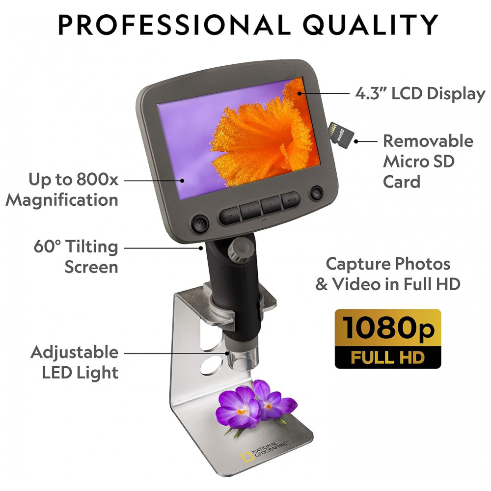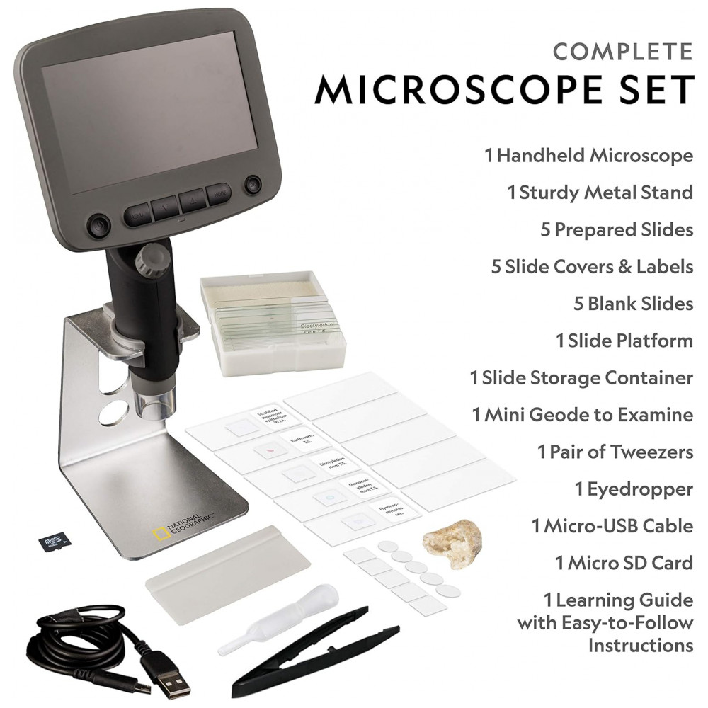 Microscópio Digital Portátil de 40 Peças Captura de Fotos 1080P Tela LCD Inclinável National Geographic – Multicolor