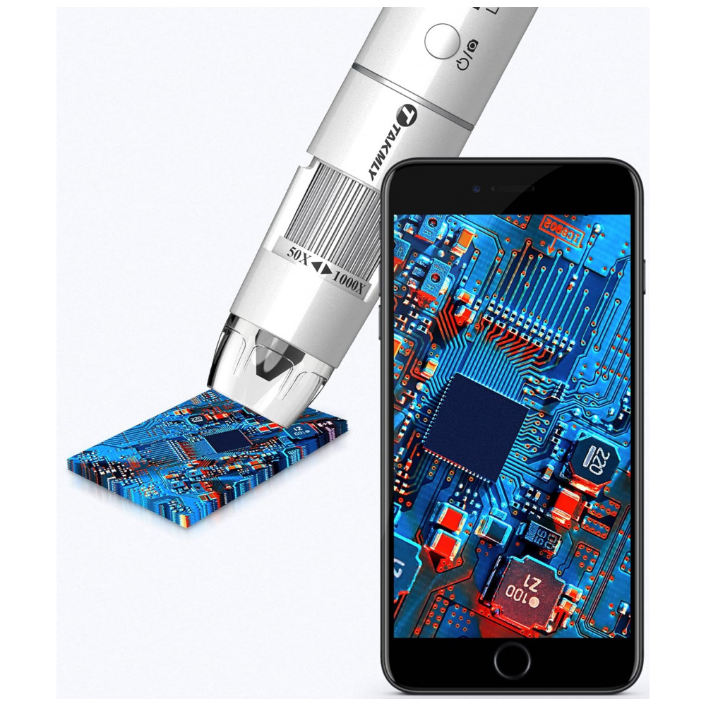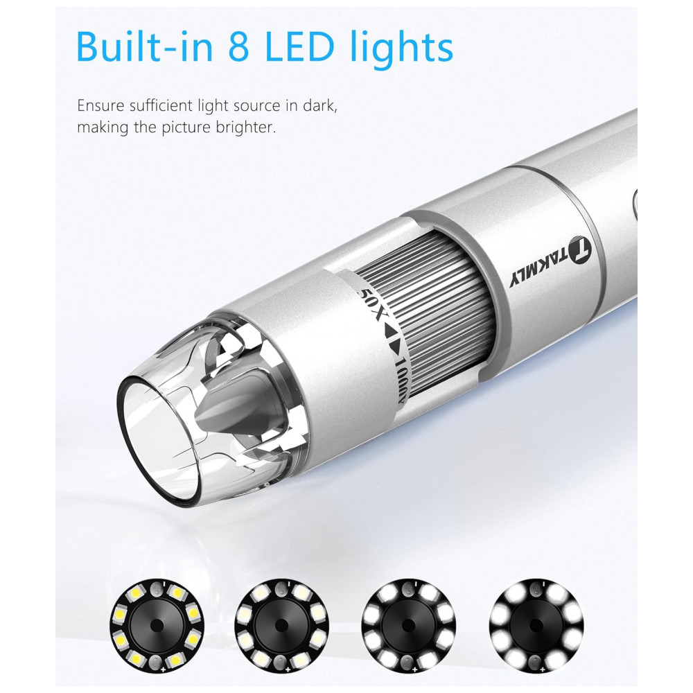 Microscópio digital sem Fio Portátil Câmera de Inspeção HD USB Ampliação de 50x 1000x T TAKMLY Prata