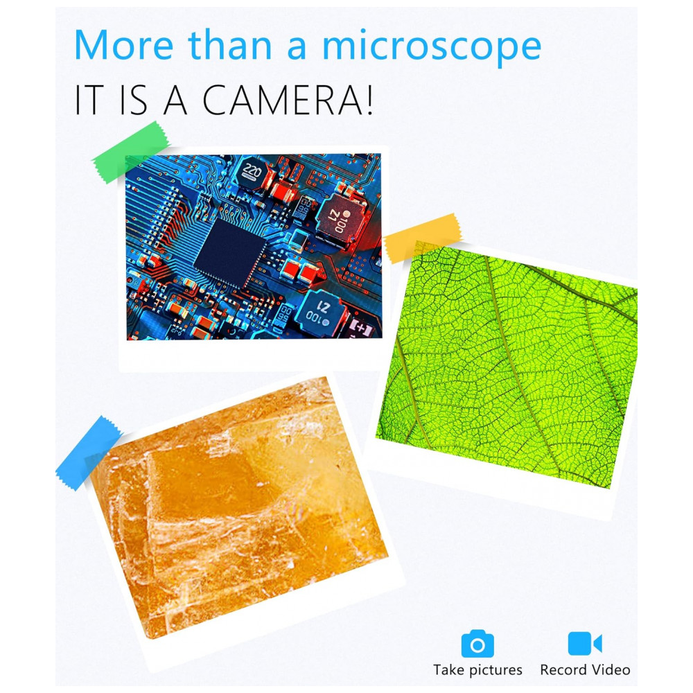 Aplicativo fornecido Software opcional para IOS, Android, Windows, MacOS X. Este microscópio pode suportar Android 6.0, iOS 9.0 ou posterior, Windows Vista 7 8 10 11 ou posterior, MacOS X 11 ou posterior. Ampliação Alta Definição 2 milhões de pixels, qualidade de imagem HD 1080P para smartphone, 720P para computador, 50x mais ampliação pode atender às suas necessidades diárias. Construído em 8 LEDs reguláveis fornecem iluminação suficiente. Fácil de transportar, recarregável Quando totalmente carregado por cerca de 3 horas, pode durar cerca de 3 horas. É uma ferramenta muito útil e divertida para ter sempre consigo ao ar livre. Você pode aproveitar o mini microscópio de bolso portátil em suas caminhadas na natureza. Uma ferramenta engraçada Este microscópio eletrônico é mais uma lupa de foco fixo, não um microscópio tradicional, Não é adequado para biólogos profissionais sérios Isso é definitivamente uma coisa muito interessante para pais, adultos, professores, estudantes, crianças, crianças, colecionadores, testadores, pessoas que consertam eletrônicos e pessoas curiosas que estão interessadas em explorar os tricomas do couro cabeludo da pele e do mundo microscópico. Não apenas um microscópio Mais do que um microscópio, é uma câmera, pode não apenas aumentar o zoom, mas também tirar fotos e gravar vídeos. A capacidade de gravar vídeos e fotos é incrível. É realmente útil ao documentar as fases da planta ao longo de seu ciclo de vida. Conexão wi fi para telefone Baixe o software no manual do usuário no Google Play ou na APP Store Ligue o microscópio, conecte o wi fi sem senha que emite do microscópio Execute o aplicativo e é fácil de usar. Conexão USB para computador 1. Para win 10 e 11, você pode conectar diretamente na porta USB e pesquisar CAMERA no WINDOWS para encontrá lo e clicar nele. 2. WIN 7 8, consulte o manual do usuário. 3. Para MacBook, use o software Photo Booth ou o Quick Time Player diretamente do Macbook. 4. Observação Desative a câmera padrão do laptop no Windows E você deve alterar as configurações de privacidade da câmera, que precisam ser alteradas para permitir o acesso. O que você obtém 1x microscópio, 1x cabo USB, 1x suporte, 1x base, 1x manual do usuário