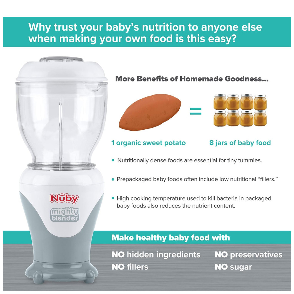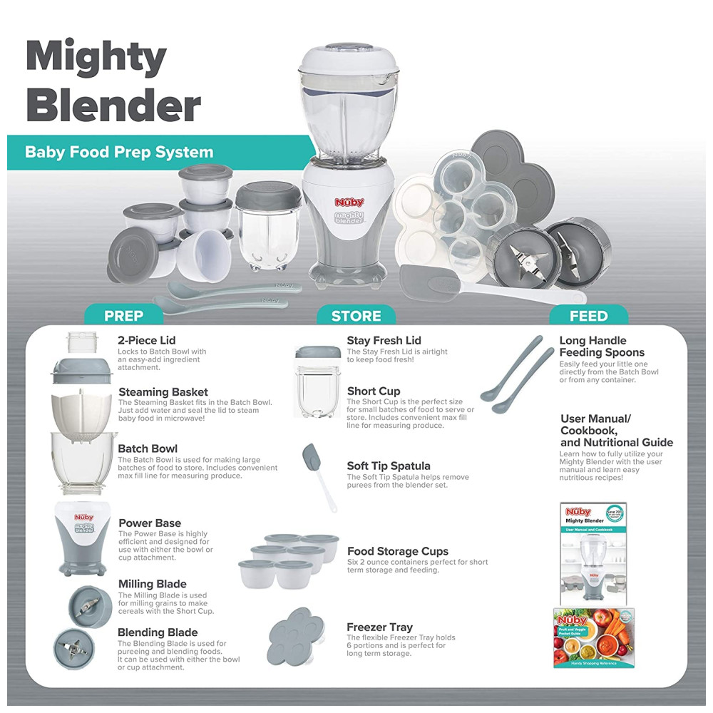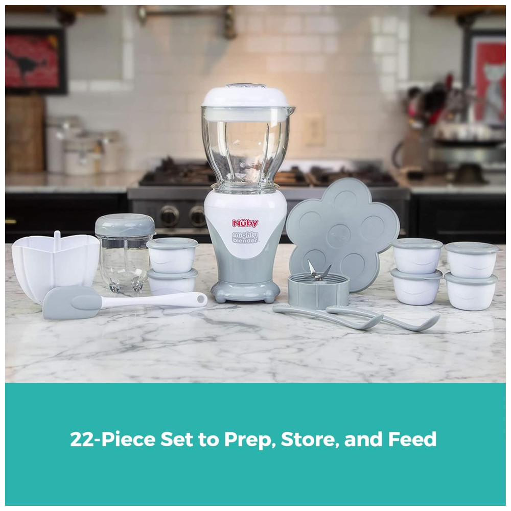 Mighty Liquidificador Ideal para Comidas de Bebê com Livro de Receitas 22 PCS NUBY 5685 Cinza