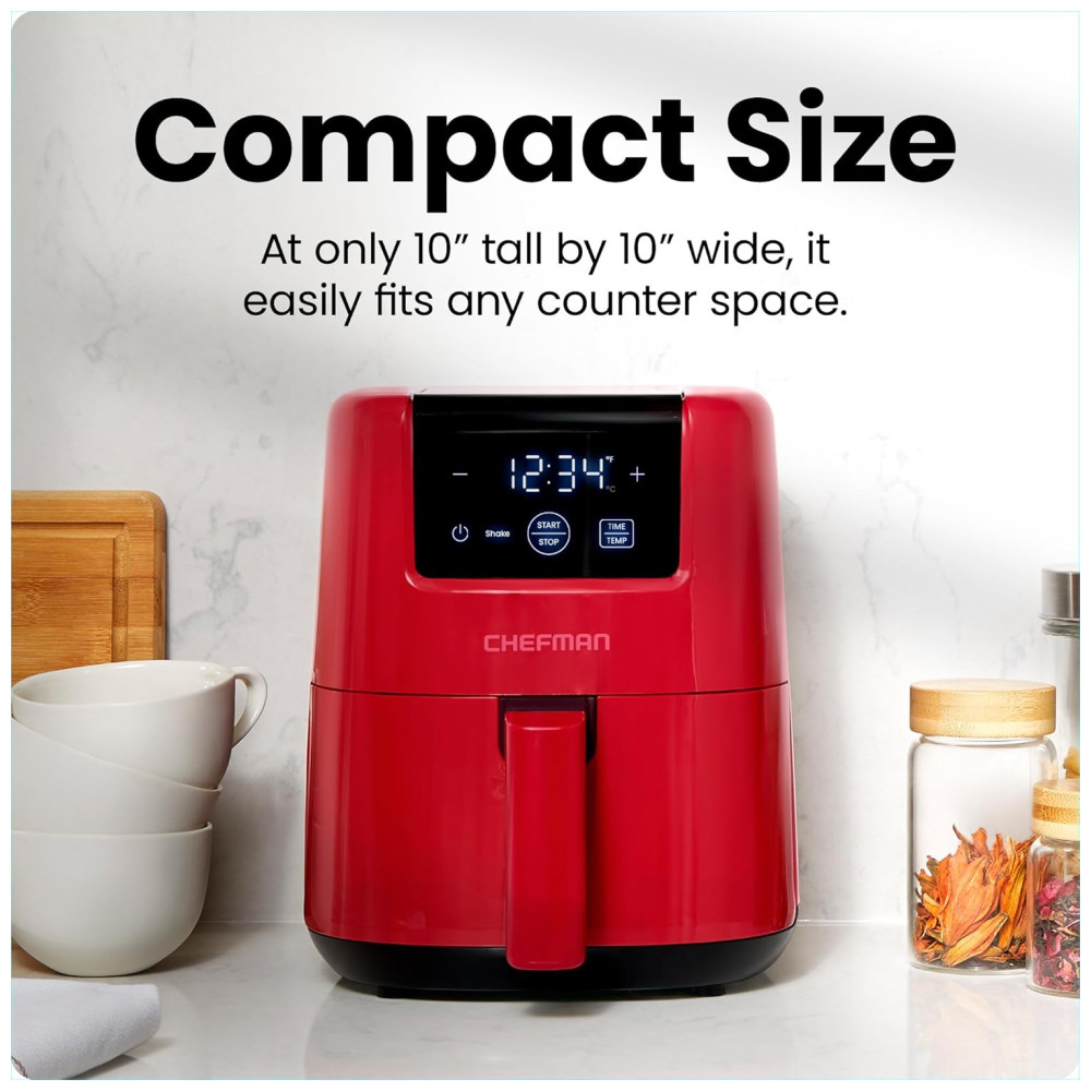 Mini Air Fryer 18L com Temporizador Digital Lembrete de Agitação Cesto Antiaderente e Lavável na Máquina de Lavar Louças 110V 900W Chefman Vermelha