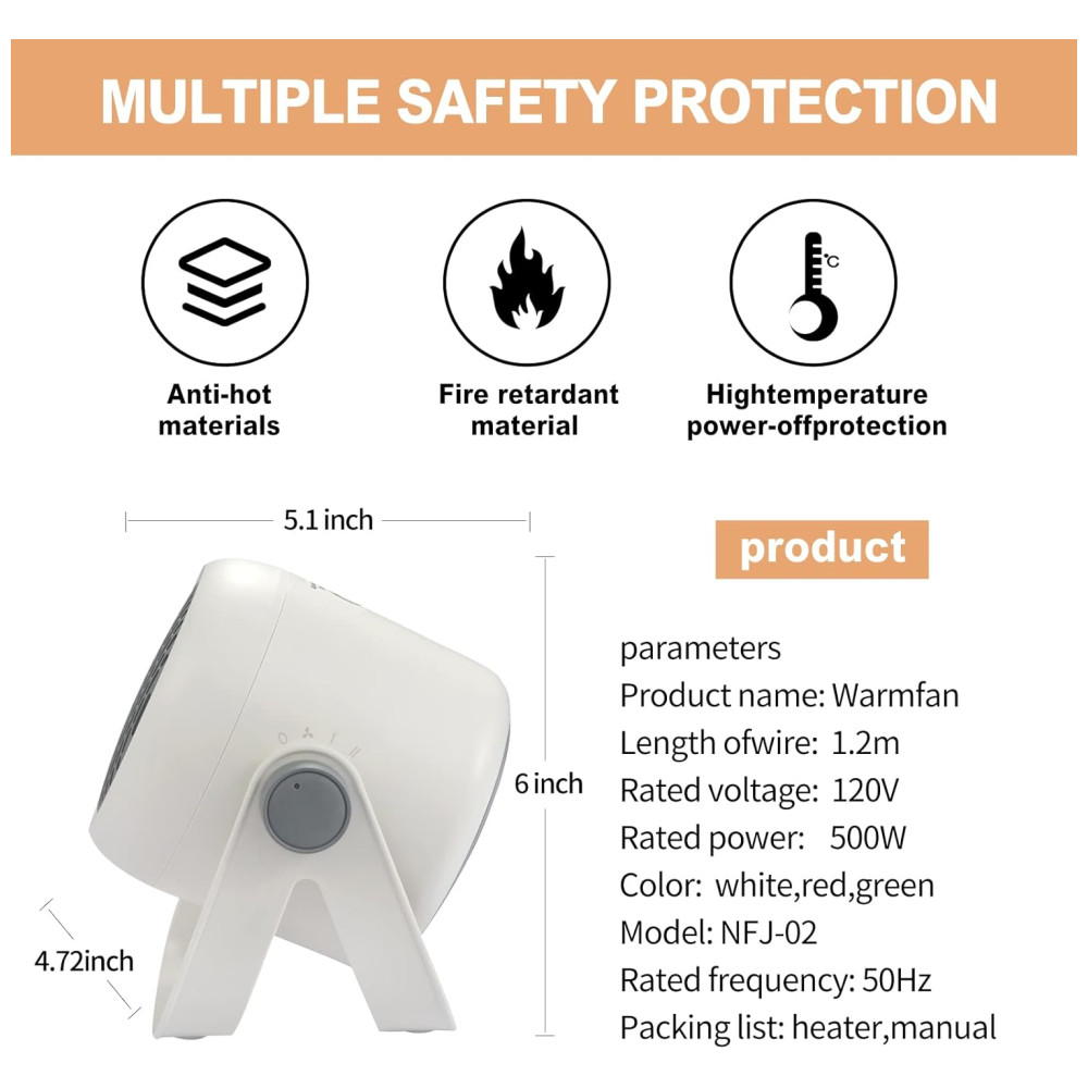 Mini Aquecedor de Cerâmica Elétrico Portátil 2 Configurações 500W 110V Xingsinan NFJ 02 Branco
