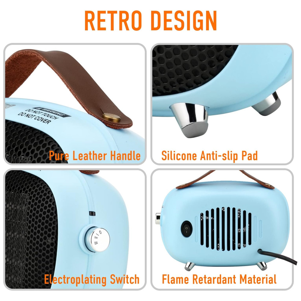 Design Mini Retrô – Este mini aquecedor de espaço adota um design retrô fashion. A aparência refrescante pode decorar sua casa ou escritório enquanto mantém o ambiente aquecido. O mini aquecedor é o presente de Natal ideal para familiares e amigos.