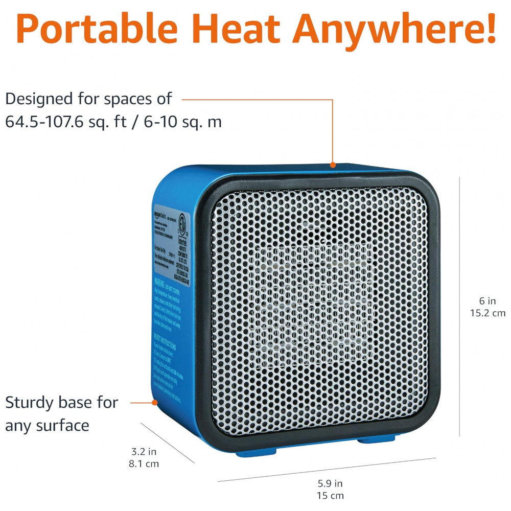 Mini Aquecedor Elétrico Portátil e Pessoal Cerâmico 110V 500 Watts Amz Azul