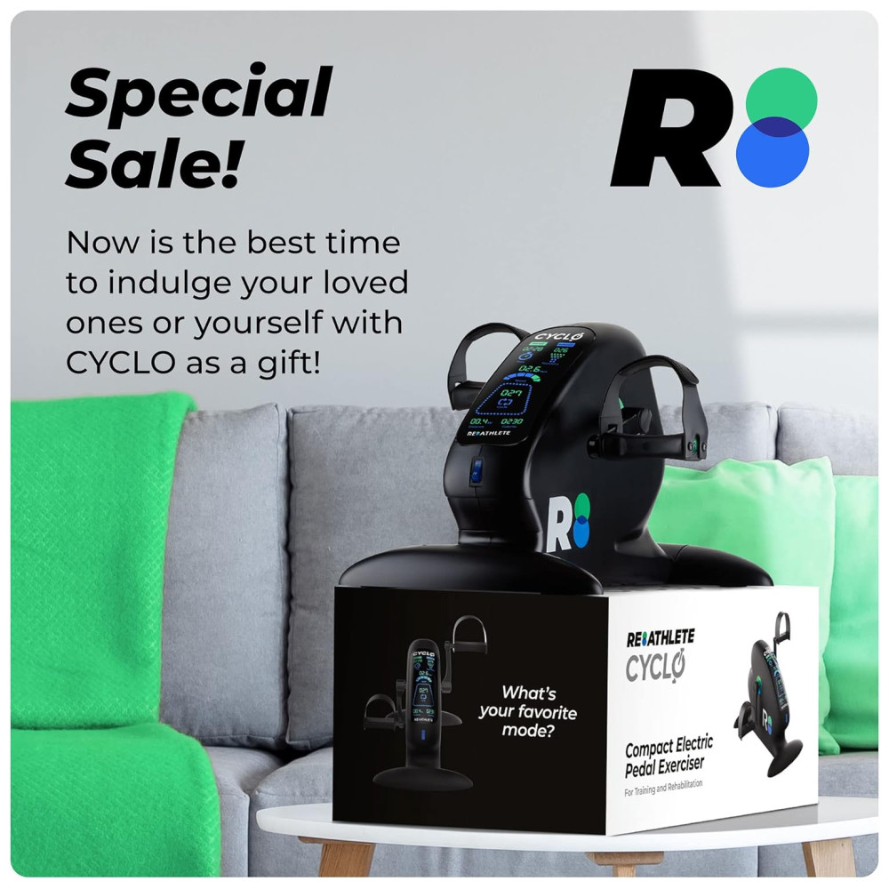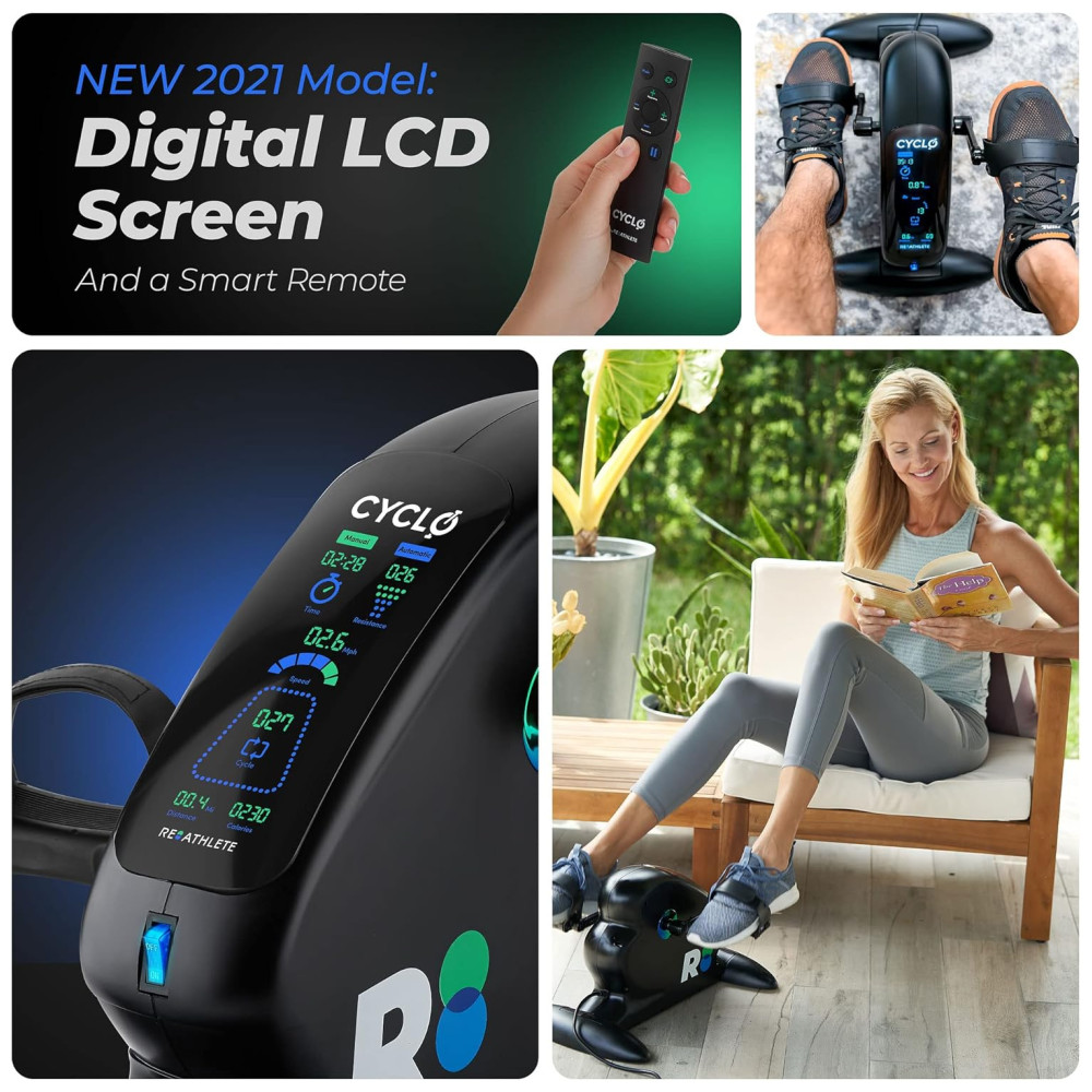 Mini Bicicleta Ergométrica Elétrica Ideal Para Idosos e Treino de Braço Perna com Painel Digital REATHLETE CYCLO Preto
