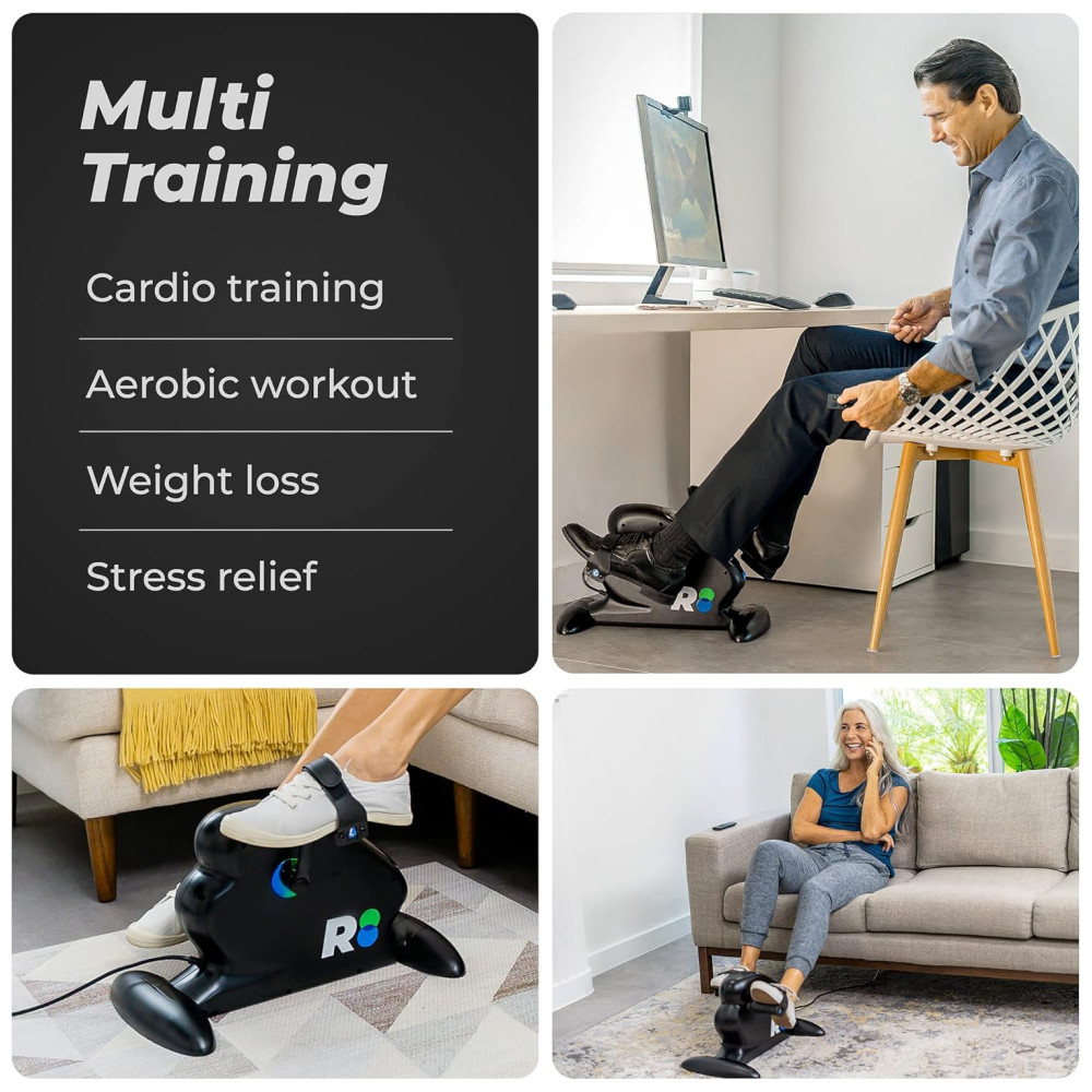 UM DISPOSITIVO SIMPLES PARA MUITOS TIPOS DE EXERCÍCIO Obter uma bicicleta de mesa , exercício a pedal ou um aparelho elíptico sob a mesa é uma ótima maneira de organizar exercícios regulares que funcionarão como exercícios cardiovasculares , aeróbicas. O ciclismo também é conhecido por ajudar as pessoas a perder peso e aliviar o estresse. A melhor coisa é que você pode usar esta mini bicicleta ergométrica , exercitador de pedal enquanto está sentado em uma mesa ou em um sofá, para poder trabalhar em seu laptop ou ler enquanto pratica atividade física simultaneamente.