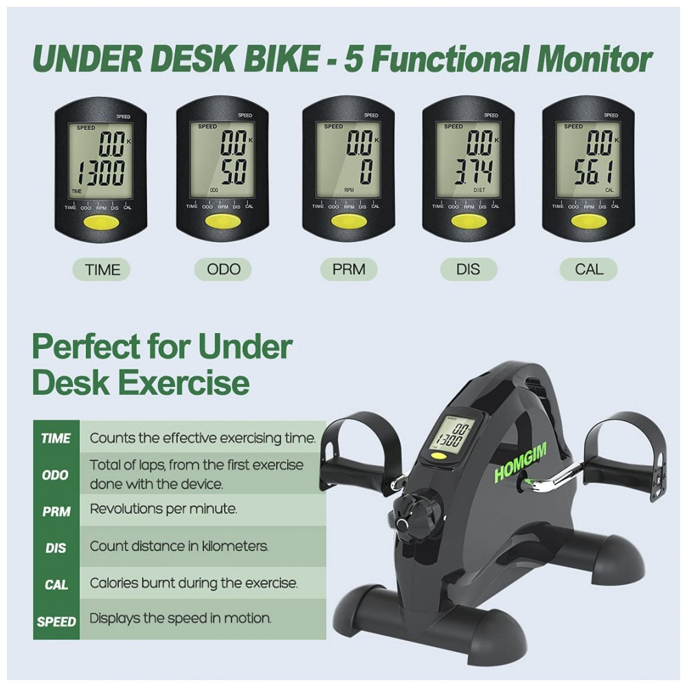 Mini Bicicleta Ergométrica Elétrica Ideal Para Idosos e Treino de Braço/Perna com Tela LCD Preta e Verde.