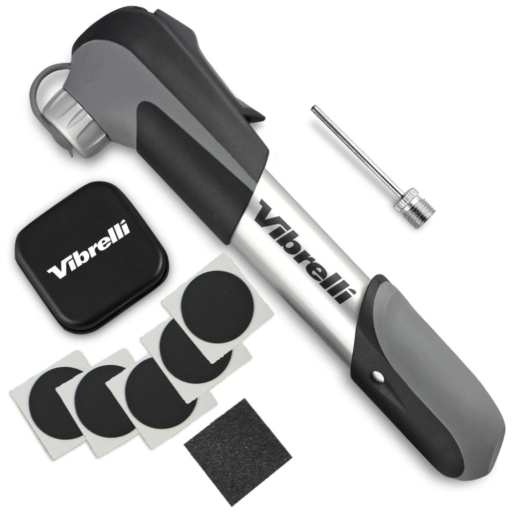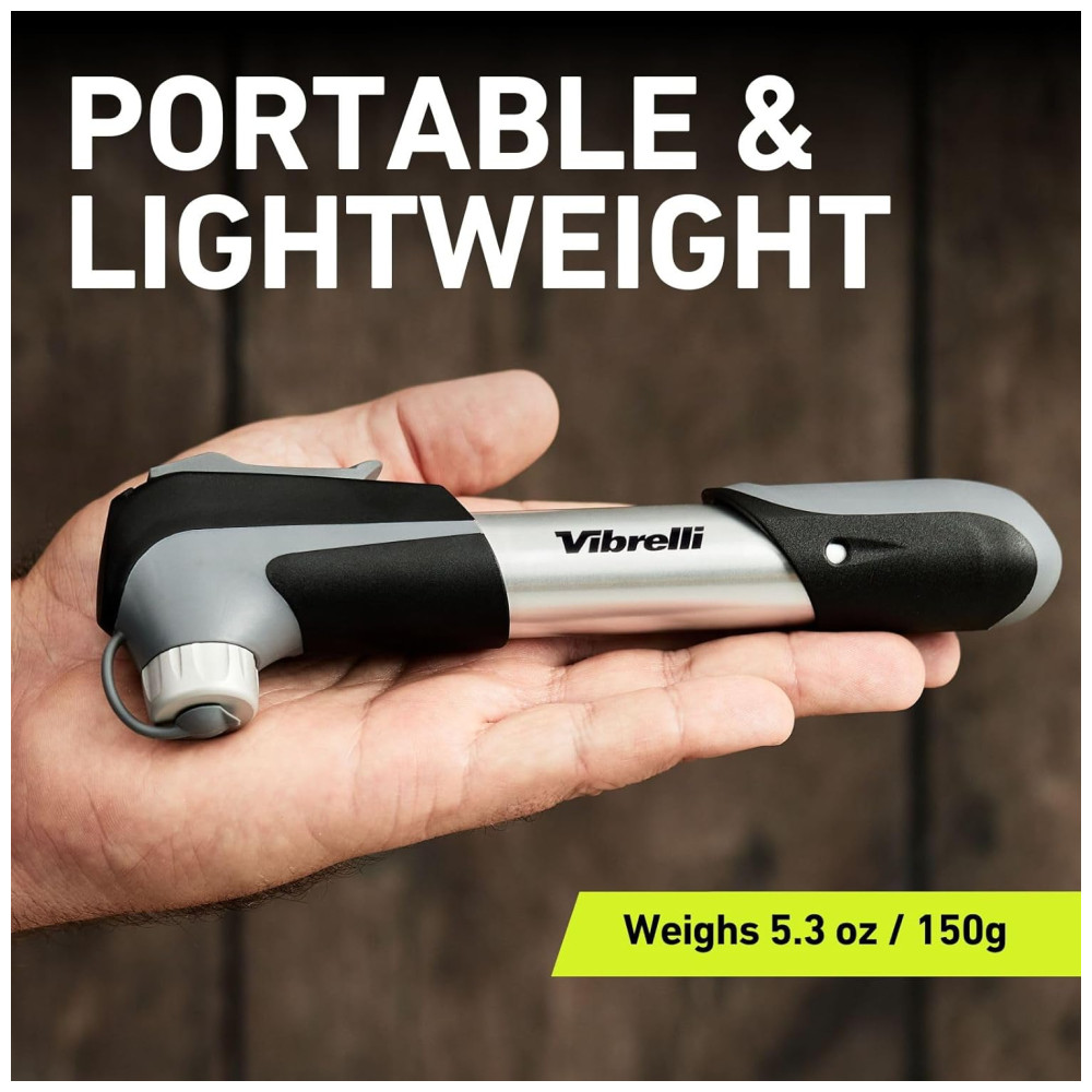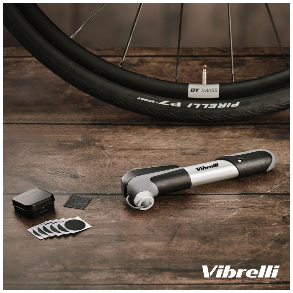 Mini Bomba de Ar Portátil 120 PSI para Bicicleta com Adesivos de Reparo e sem Necessidade de Troca de Válvula VIBRELLI Preto