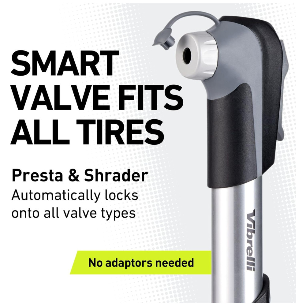 Válvula inteligente SUPER FIT Bloqueia automaticamente as válvulas Schrader e Presta, sem vazamentos, sem necessidade de troca de válvula ou adaptadores extras de bomba de bicicleta necessários.