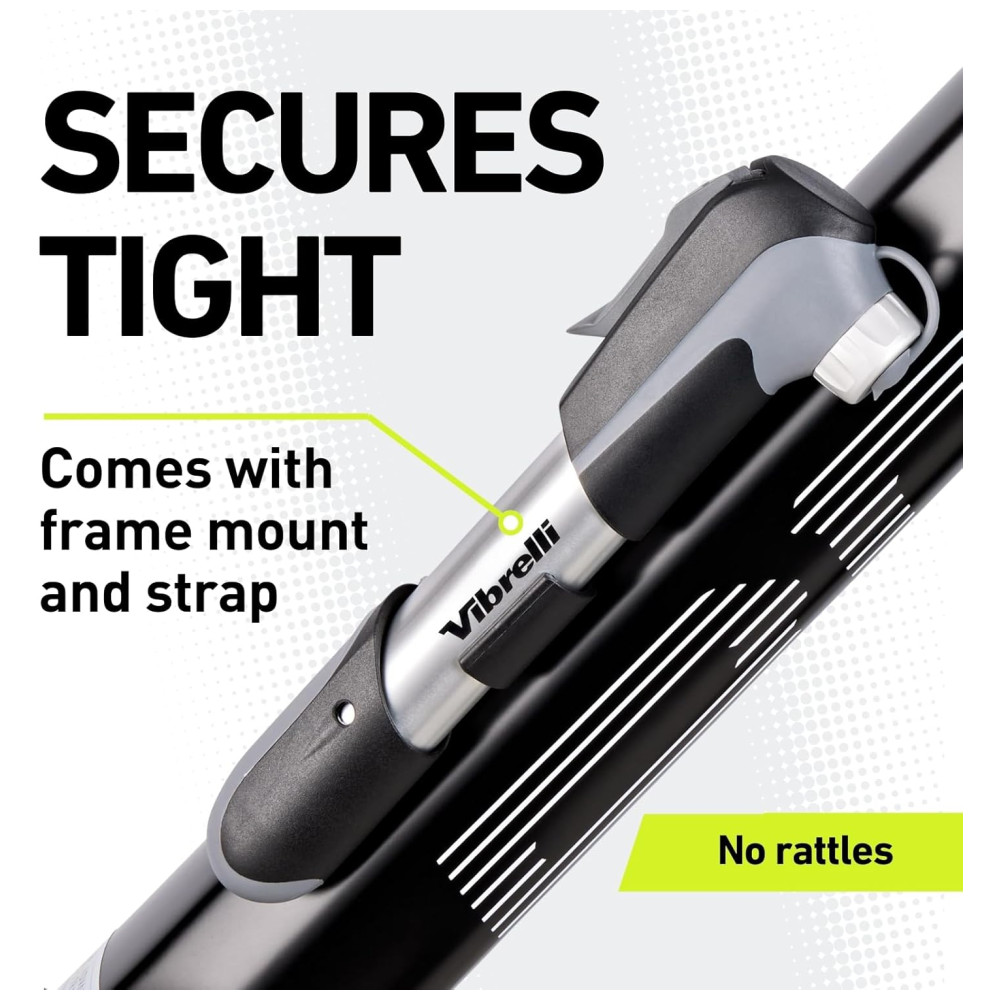 Suporte de montagem A tira de velcro mantém a bomba da bicicleta firmemente no lugar, sem chocalhos ou bombas perdidas.