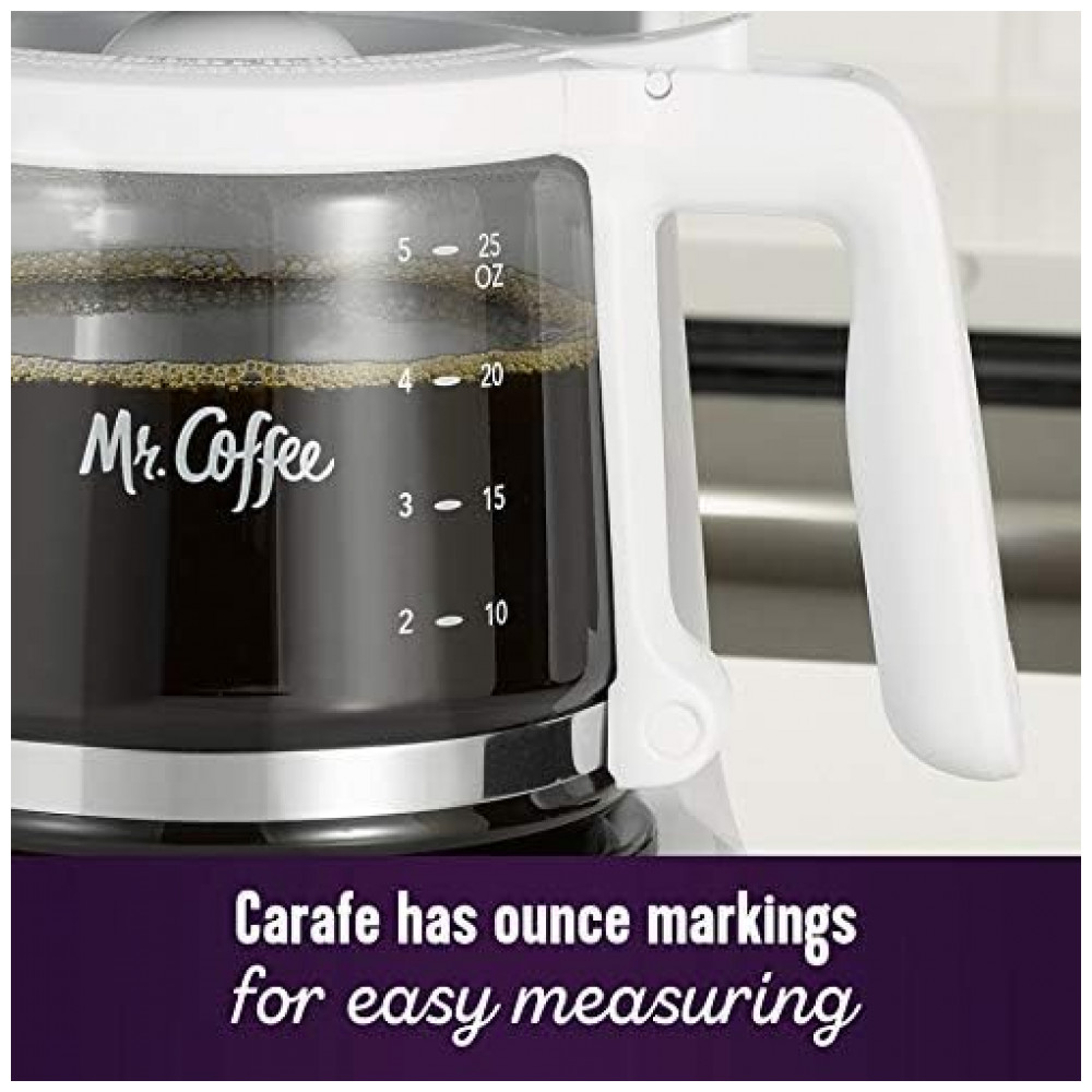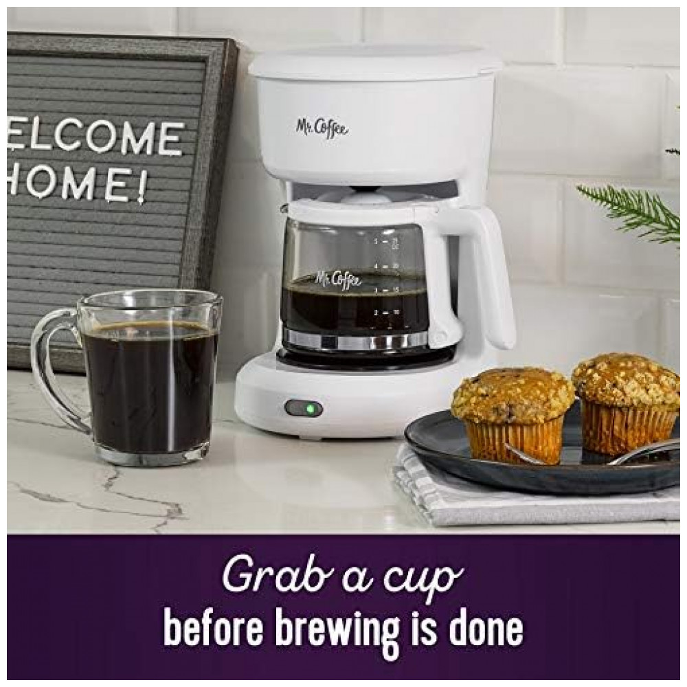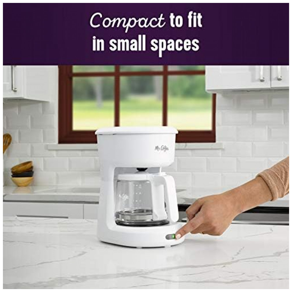 Desfrute de um ótimo café simplesmente feito com o Mr. Coffee 5 Cup Coffee Maker. Com capacidade de até 25 onças aproximadamente 739 ml de café, é ideal para preparar duas xícaras de 12 onças aproximadamente 355 ml cada, e o design compacto se encaixa perfeitamente em pequenos espaços. O design atualizado e ergonômico da jarra possui marcações de onça que facilitam a medição. Basta configurá lo, ligá lo e preparar o café.