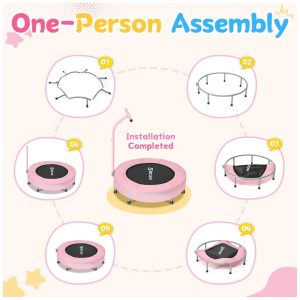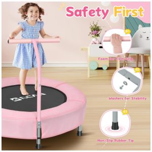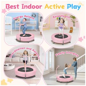 Mini Cama Elástica Dobrável com Alça Ajustável e Fácil Montagem para Crianças de 2 a 5 Anos Bcan Rosa