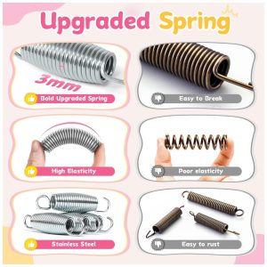 Este tapete Nogap é uma almofada e tapete integrados que garantem um ambiente seguro para as crianças, evitando que elas pisem acidentalmente em aberturas e minimizando o risco de quedas. O mini trampolim BACN para crianças de 3 a 5 anos possui 28 molas helicoidais extragrossas que foram testadas mais de 200.000 vezes para garantir um salto seguro e de suporte. Além disso, o trampolim possui um guiador de espuma, pontas de borracha antiderrapantes e arruelas que melhoram a estabilidade para garantir uma experiência de salto sem preocupações para o seu filho. A montagem do trampolim é fácil e pode ser realizada por uma pessoa, com a ajuda de ferramentas, instruções e vídeo de instalação passo a passo claros. Este trampolim infantil é ideal para motivar as crianças a se moverem e brincarem ativamente, ajudando a aumentar a densidade óssea, o controle muscular e a coordenação. O serviço pós venda oferece uma resposta rápida dentro de 24 horas e armazéns de peças em todos os EUA, tornando o processo mais fácil e eficaz.