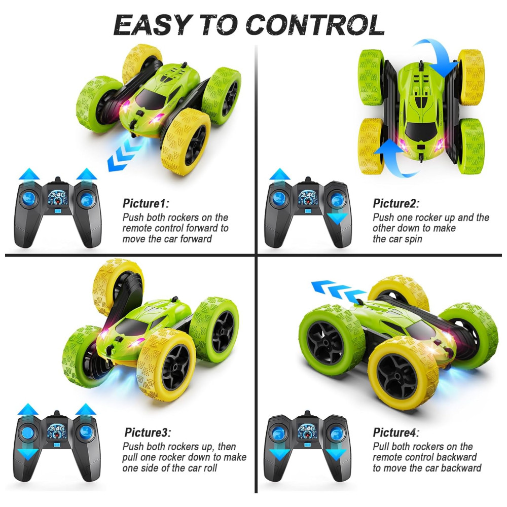 O Carro de Acrobacias RC QUNREDA foi atualizado com Módulos de Bateria Recarregáveis! Ele possui 2 módulos de bateria recarregáveis, um no corpo do carro e outro na embalagem para uso alternado. Os módulos de bateria são removíveis, proporcionando mais segurança e praticidade para recarregar e brincar. Cada módulo suporta 25 minutos de jogo, totalizando 50 minutos! Com apenas dois botões no controle, é possível realizar 9 acrobacias diferentes. Além disso, o carro pode girar 360° em ambos os lados enquanto se move. Com alcance de 50 metros, o carro estará sempre à vista. Equipado com faróis vermelhos e pneus duráveis, o carro oferece resistência a impactos, aderência e estabilidade. Perfeito para interiores e exteriores. O pacote inclui: 1 Carro RC, 1 controle remoto, 2 módulos de bateria recarregáveis, 2 pilhas AA, 1 cabo de carregamento, 1 chave de fenda e 1 manual do usuário. Ideal como presente de Halloween, Natal ou aniversário para meninos e meninas!