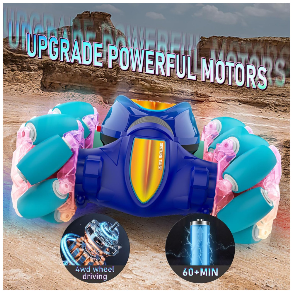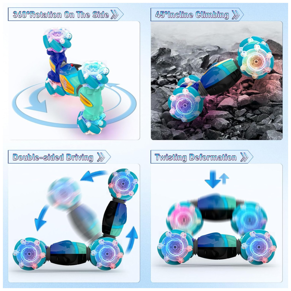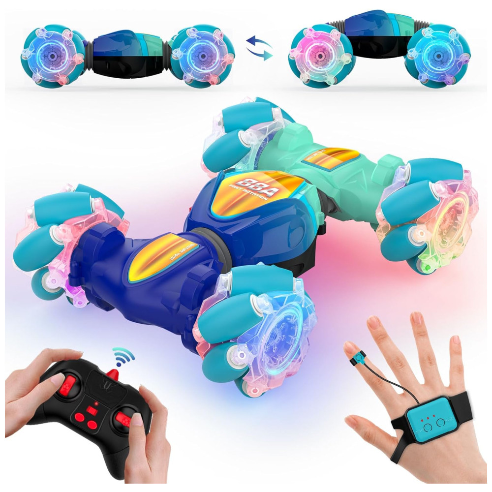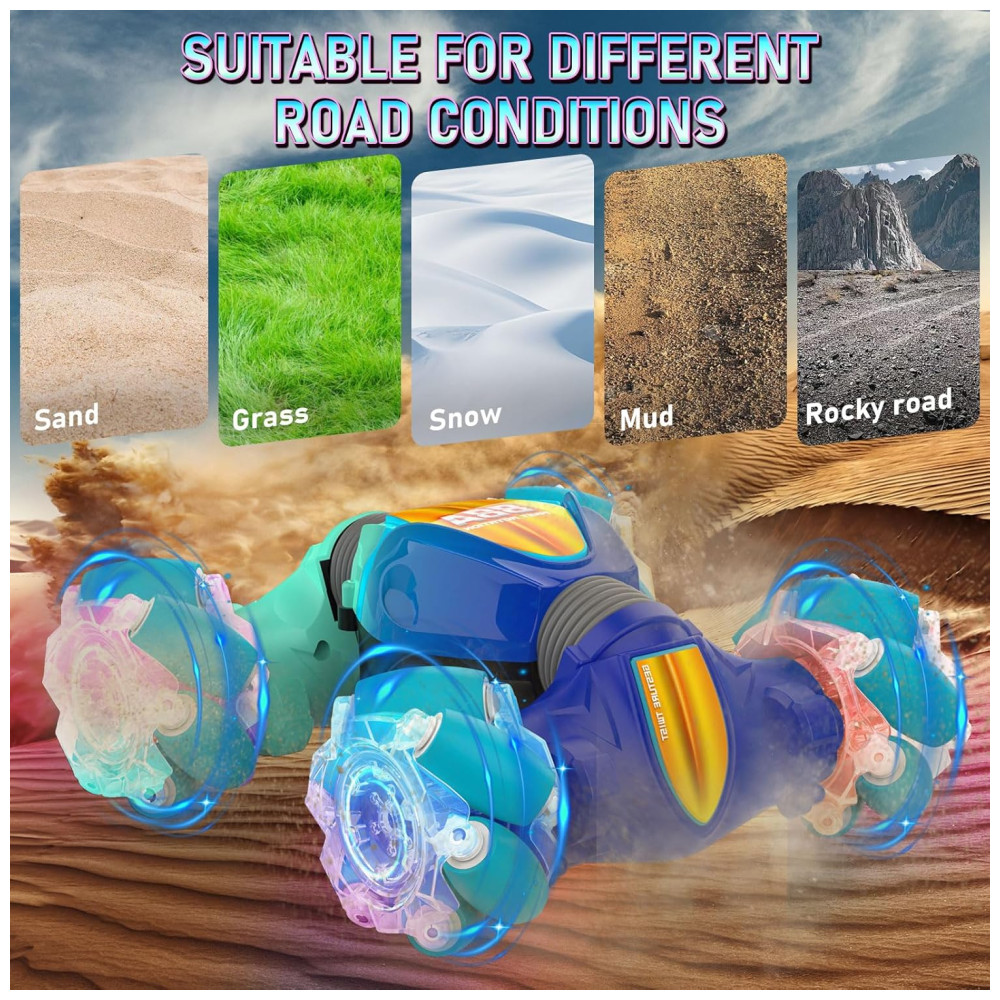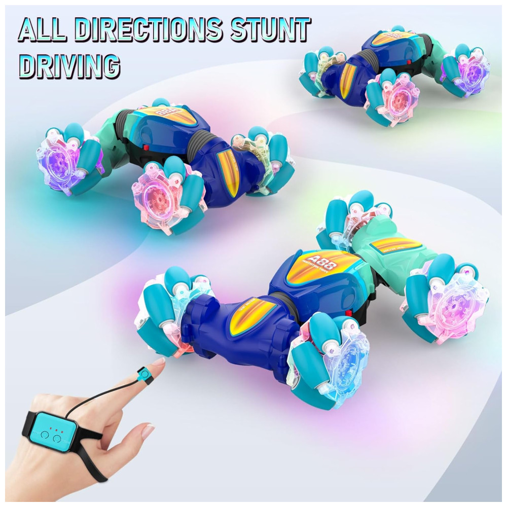 Mini Carro de Controle Remoto com Sensor de Movimentos Brinquedo de Acrobacias para Crianças de 6 a 12 anos 2.4GHz 4×4 Off Road com Luzes LEDSAUFTTI