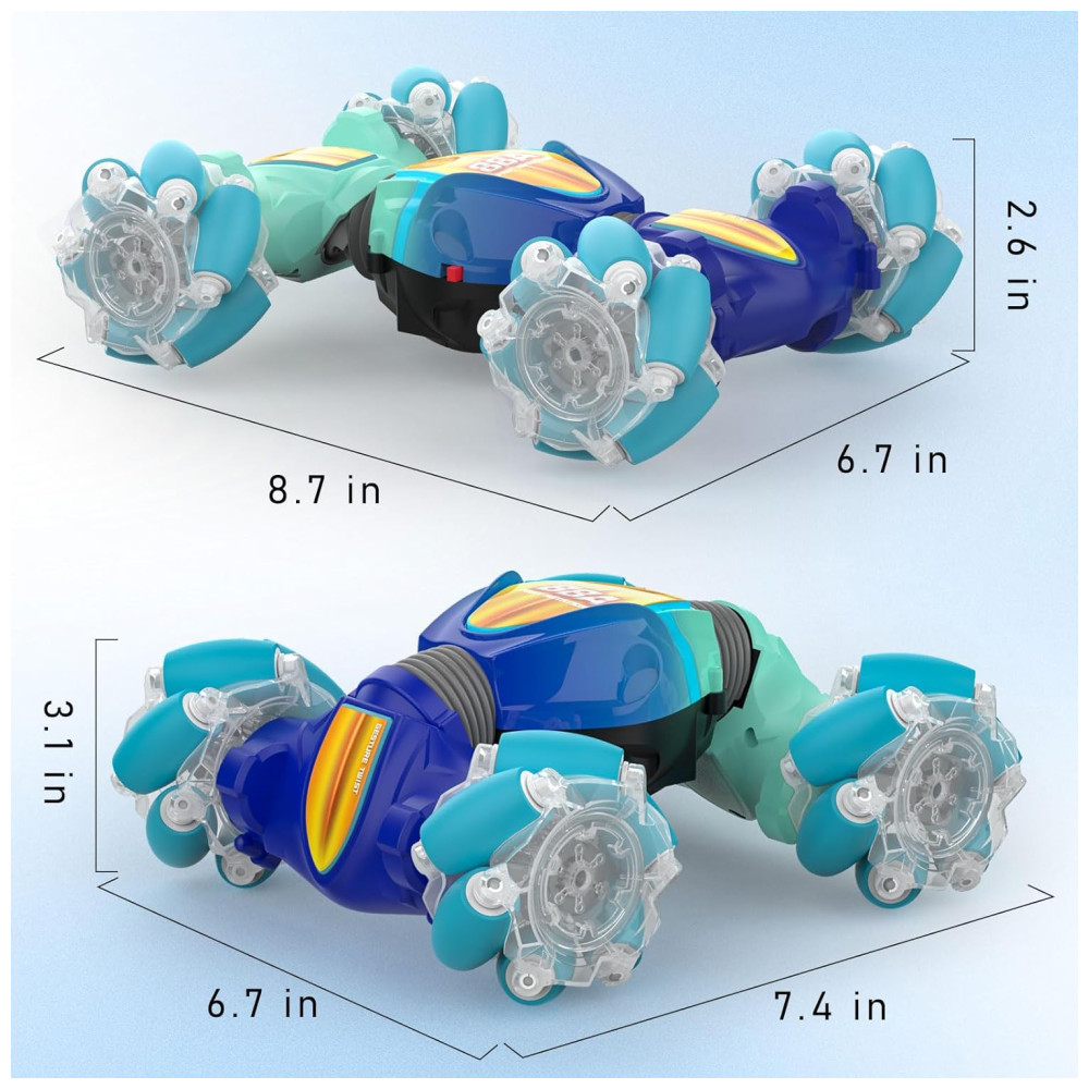 Apresentamos o incrível carrinho de controle remoto de alta tecnologia da SAUFTTI, projetado para realizar acrobacias e manobras em todas as direções. Com efeitos de luzes e música, este carro proporciona diversão interminável para crianças, oferecendo uma experiência de operação maravilhosa e visualmente impressionante. Com estrutura durável e design inovador, pode enfrentar diferentes terrenos com facilidade, graças ao motor potente e tração nas quatro rodas. Além disso, possui dois modos de controle remoto: o tradicional e um relógio com controle de gestos, proporcionando uma experiência única e divertida. Com duas baterias recarregáveis, este carrinho promete horas de entretenimento longe das telas. O presente perfeito para meninos e meninas de 6 a 12 anos, para todas as ocasiões especiais.