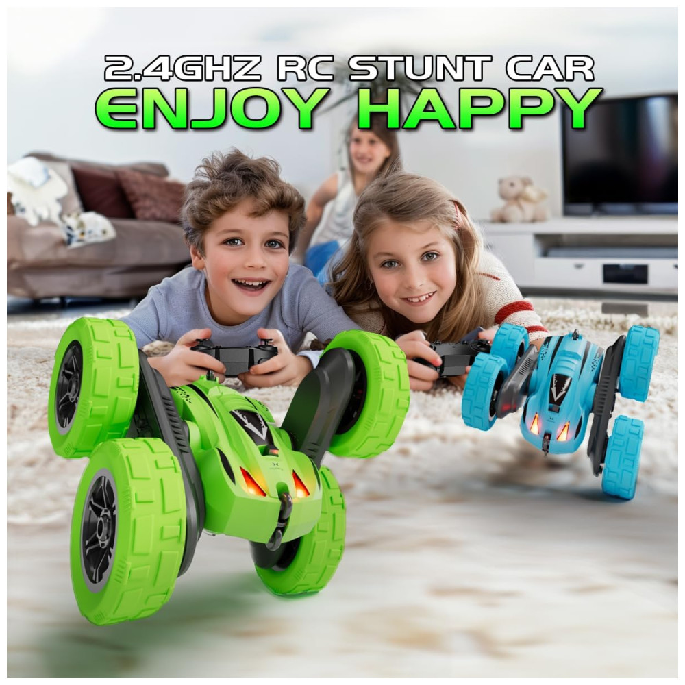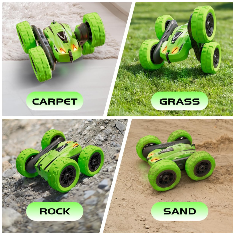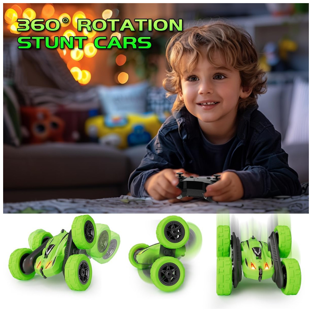 Mini Carro de Controle Remoto Veloz RacingFun Veículo RC Dupla Face 360° com Faróis LED Brinquedo Recarregável Off-Road p/ Meninos de 5 a 12 Anos