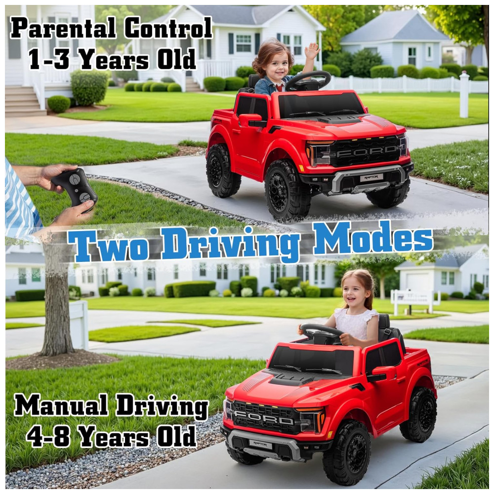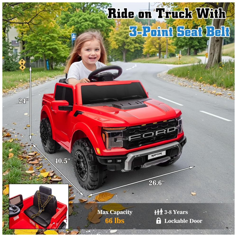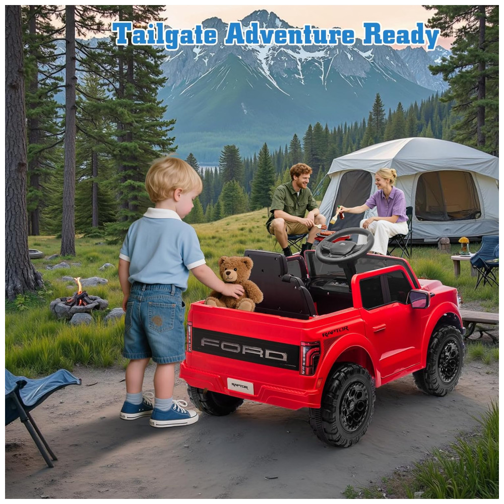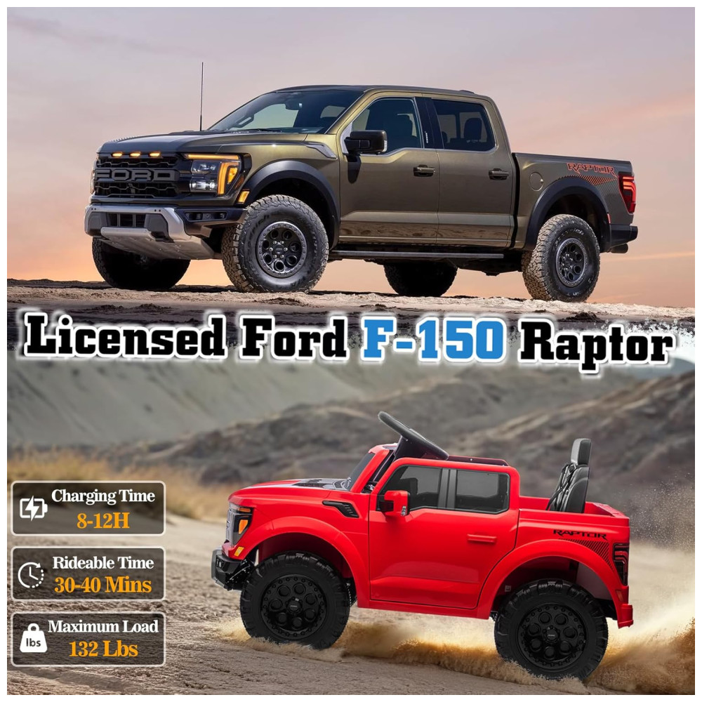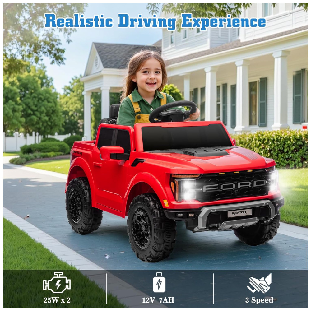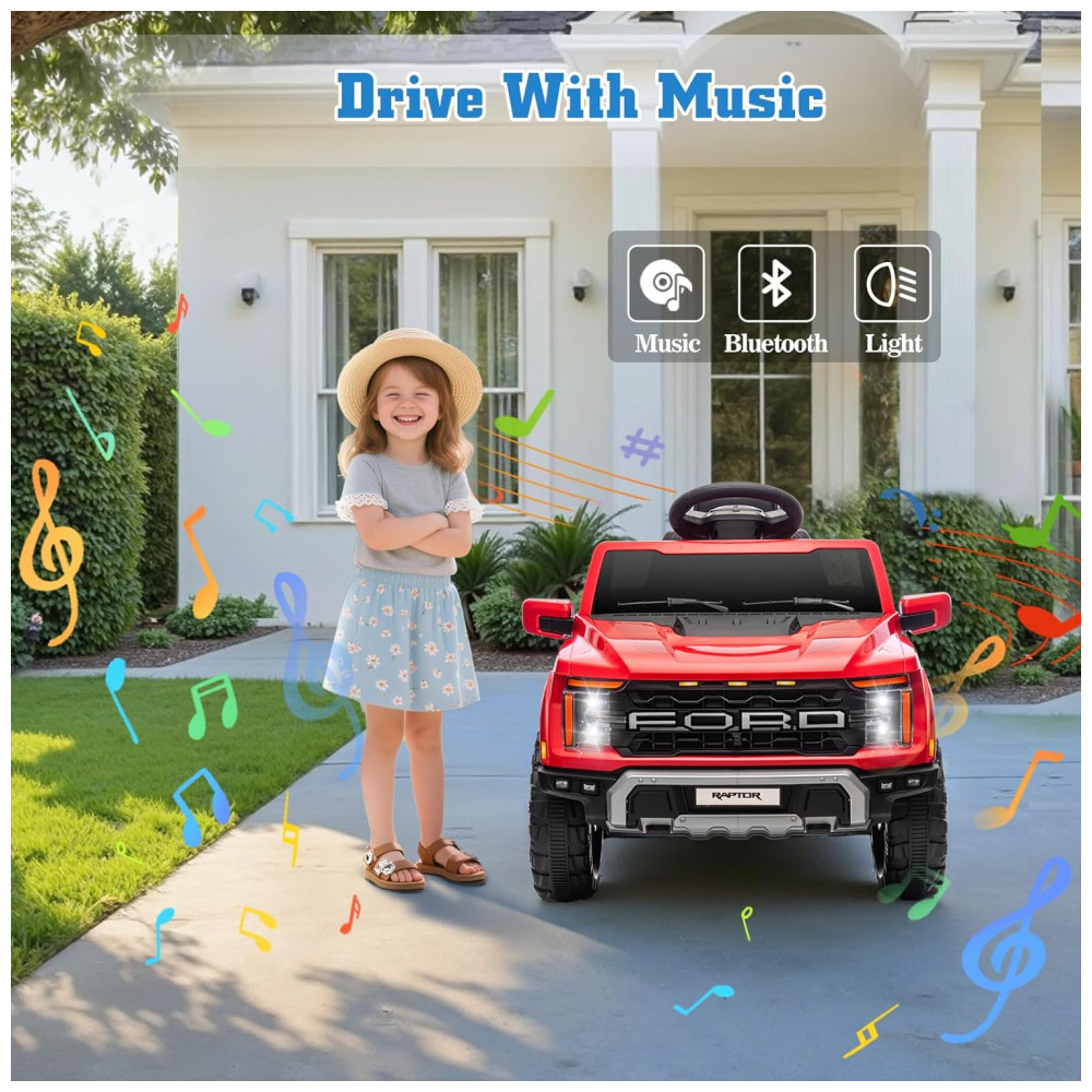 Mini Carro Elétrico Licenciado Ford F150 Raptor 12V p/ Crianças c/ Controle Remoto Luzes LED MP3 Caçamba Cinto de Segurança – 120cmSegmart