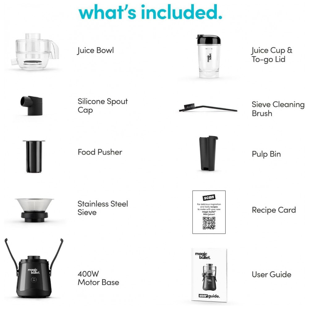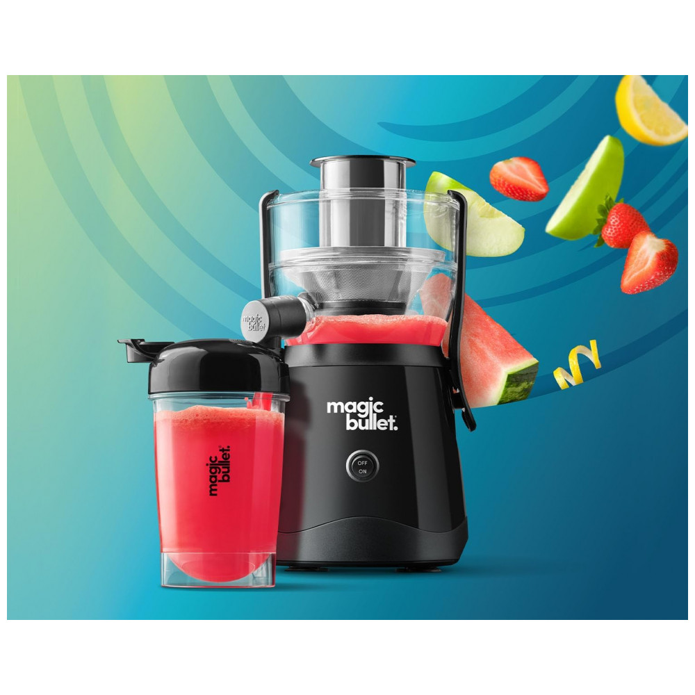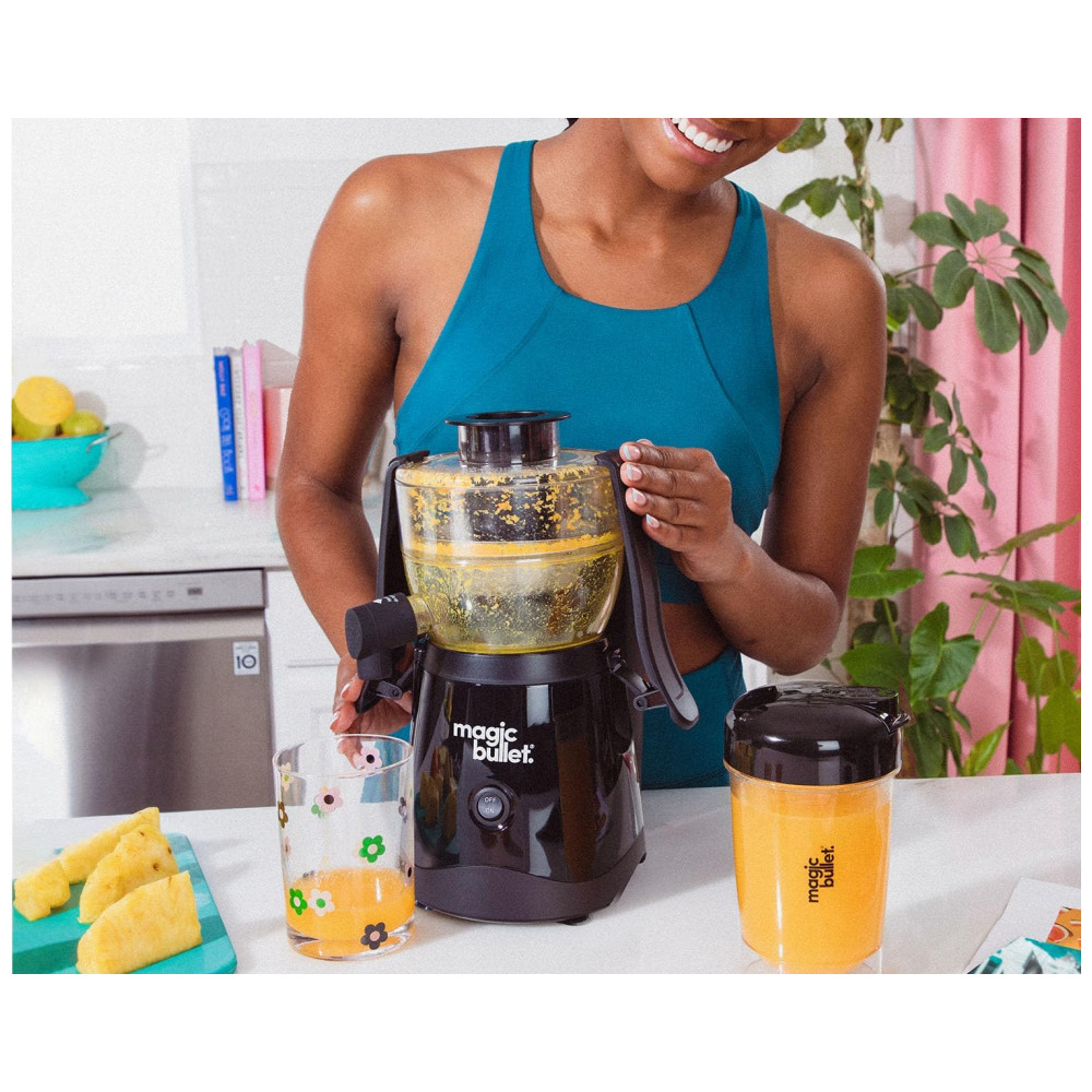 O Magic Bullet Mini Juicer é o companheiro perfeito para quem deseja sucos rápidos, nutritivos e saborosos. Com ele, você maximiza o rendimento e minimiza a bagunça e o desperdício. É um dispositivo fácil de usar, fácil de limpar e pronto para se adaptar a qualquer espaço em sua cozinha. Desfrute de sucos frescos e deliciosos a qualquer hora, sem complicações adicionais