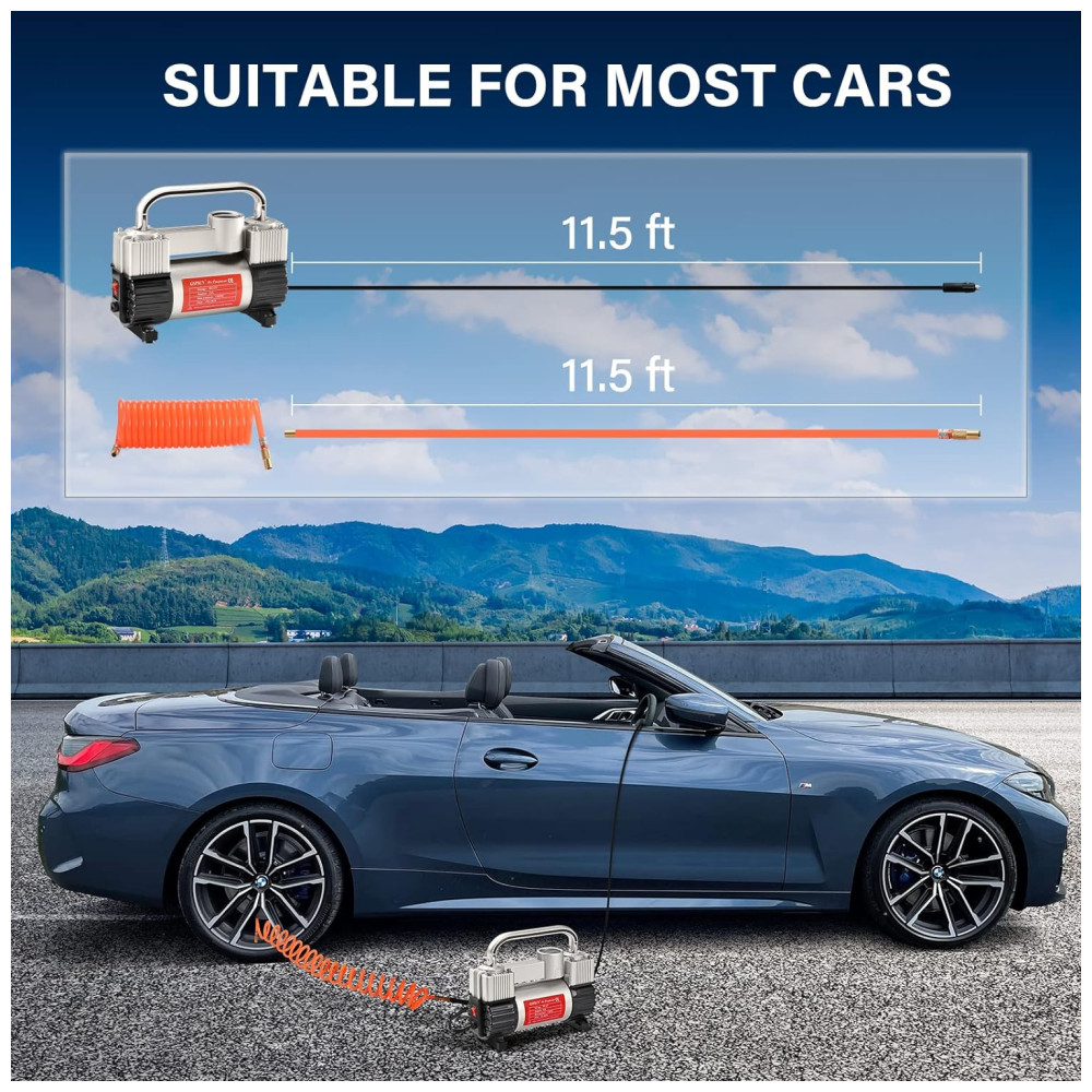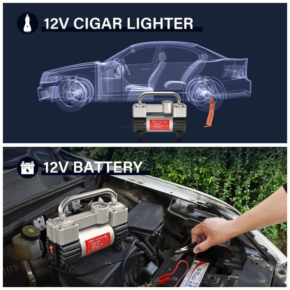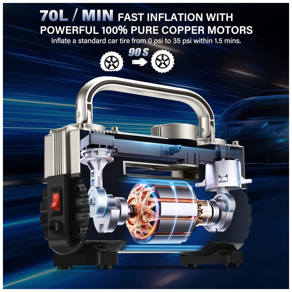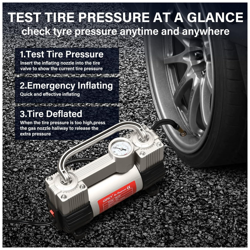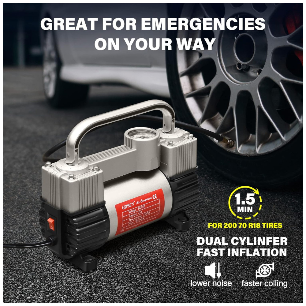 INFLAÇÃO RÁPIDA GSPSCN Heavy Duty Double cilindro design, pressão máxima 150PSI, fluxo de ar 70L , min, infla o pneu do veículo padrão em 1,5 minutos 200, 70 , R18, 0 40psi