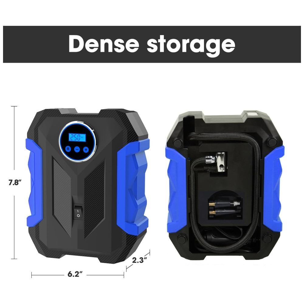 Mini Compressor de Ar Elétrico Automotivo Elétrico Portátil 12V 150 PSI com Luz LED CARSUN Preto