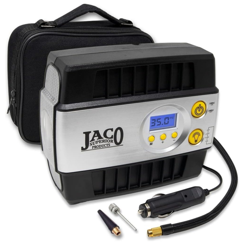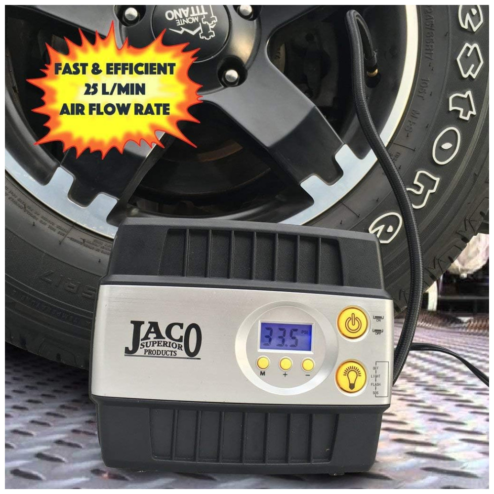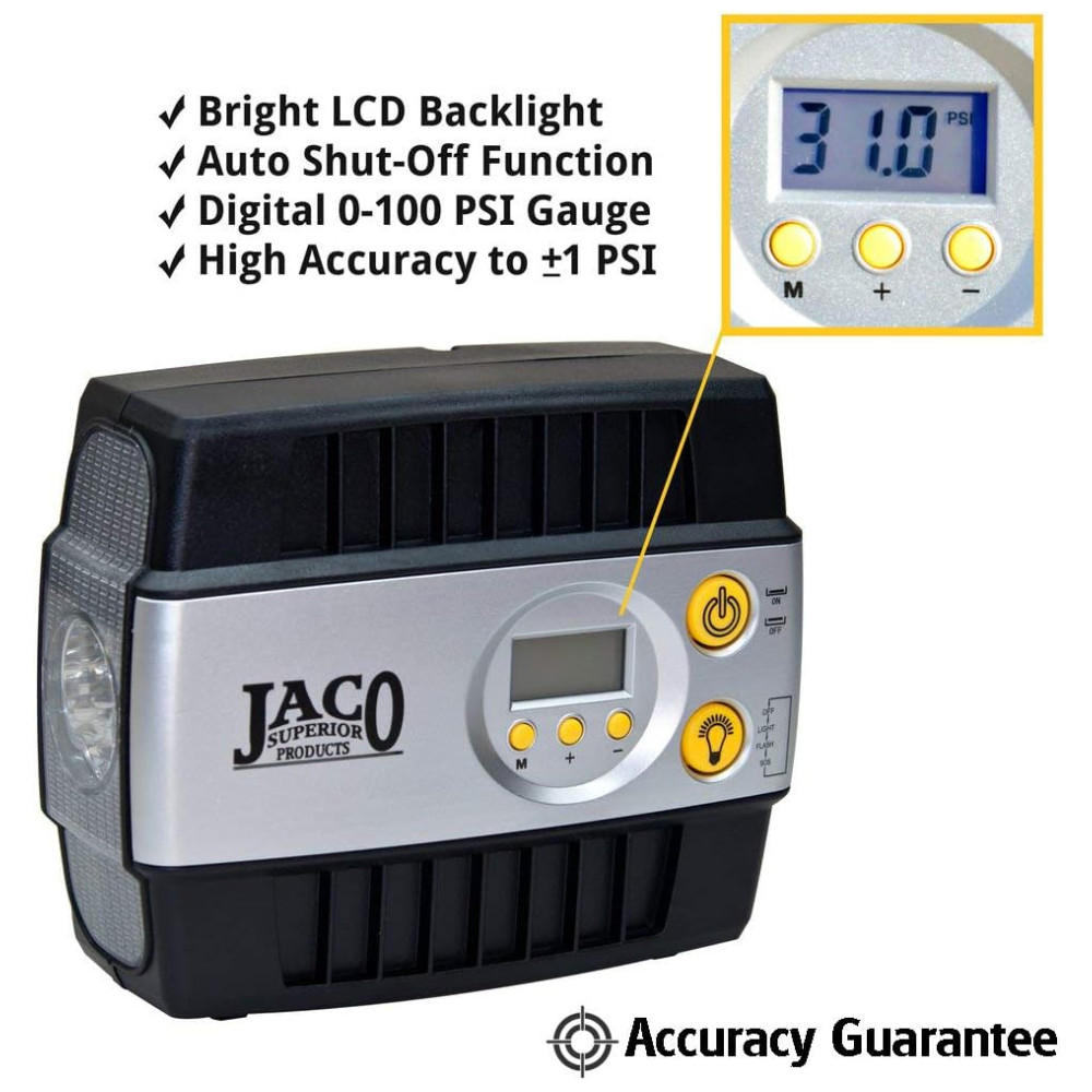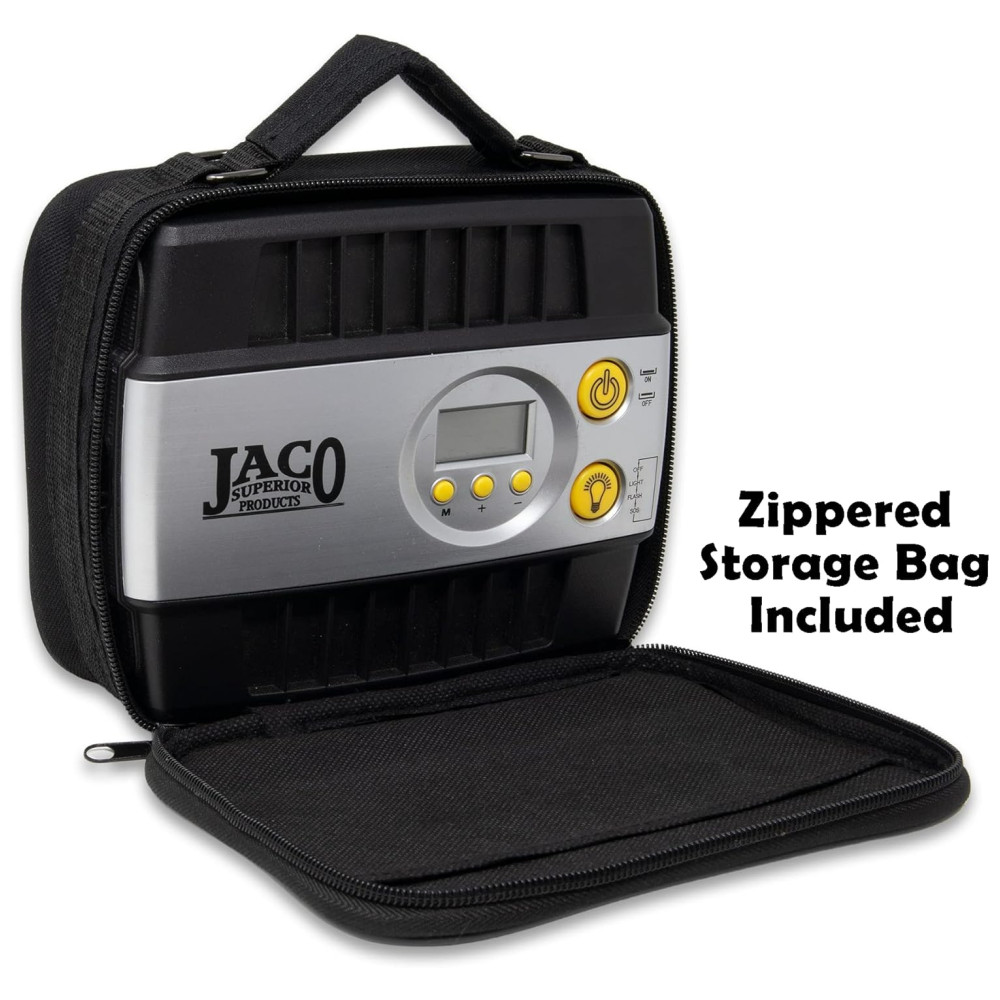 Mini Compressor de Ar Elétrico Automotivo portátil 12V 100 PSI com luz LED e desligamento automático JACO SUPERIOR PRODUCTS JSP 008 Prateado