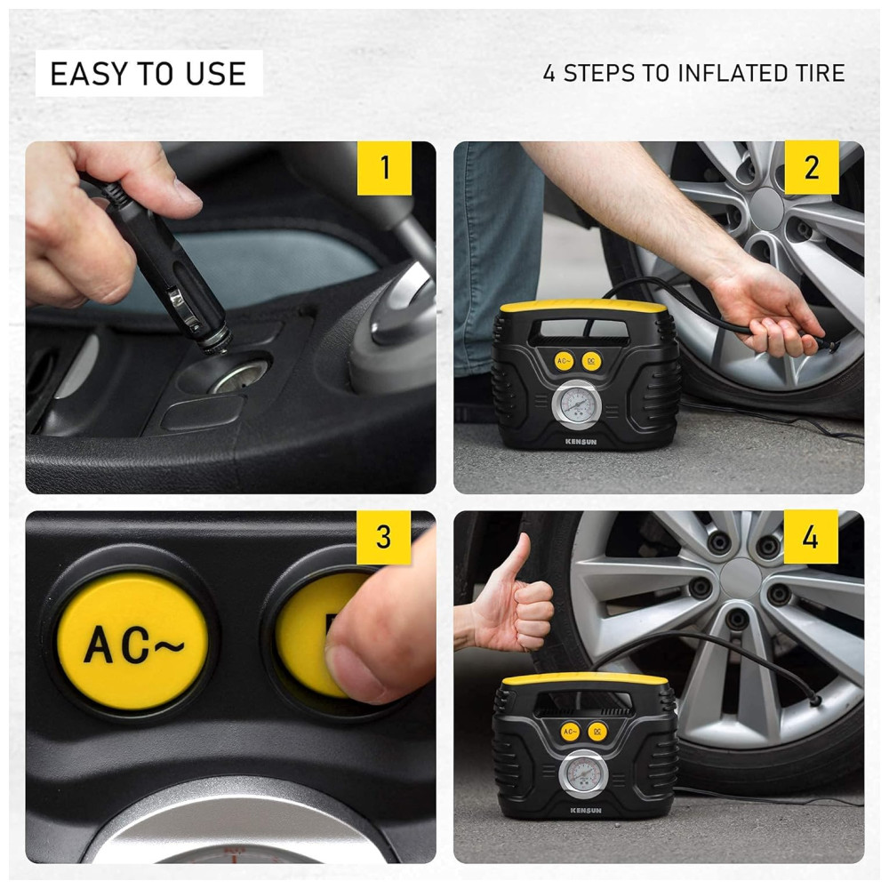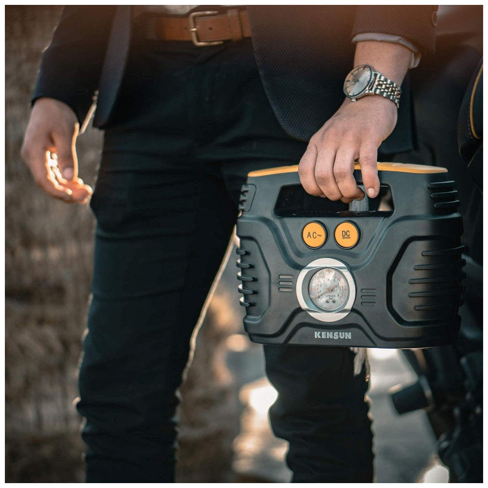 Mini Compressor de Ar Elétrico Automotivo portátil 12V 120 PSI preto 110v KENSUN EHRComp A58B Preto