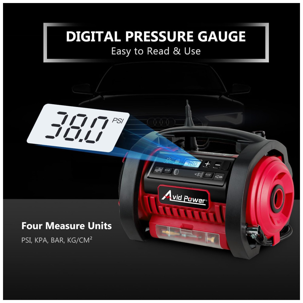 Mini Compressor de Ar Elétrico Automotivo Portátil 12V 125 PSI com Manômetro Digital e Motor Duplo 110v AVID POWER ACAP322 CA Vermelho
