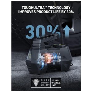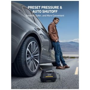 DESLIGAMENTO AUTOMÁTICO Simplicidade e funcionalidade. A bomba de ar para automóveis VacLife oferece a você uma experiência de uso tranquila e segura com base na função de desligamento automático. Predefina o nível de pressão desejado e inicie o trabalho de enchimento. O compressor de ar do carro desligará automaticamente no nível desejado. Não há necessidade de se preocupar com o enchimento excessivo, o inflador inteligente para pneus VacLife tem a sua volta.