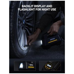 Mini Compressor de Ar Elétrico Automotivo portátil 12V DC 100 PSI 120W com manômetro digital e luz LED ASTROAI A220B Preto