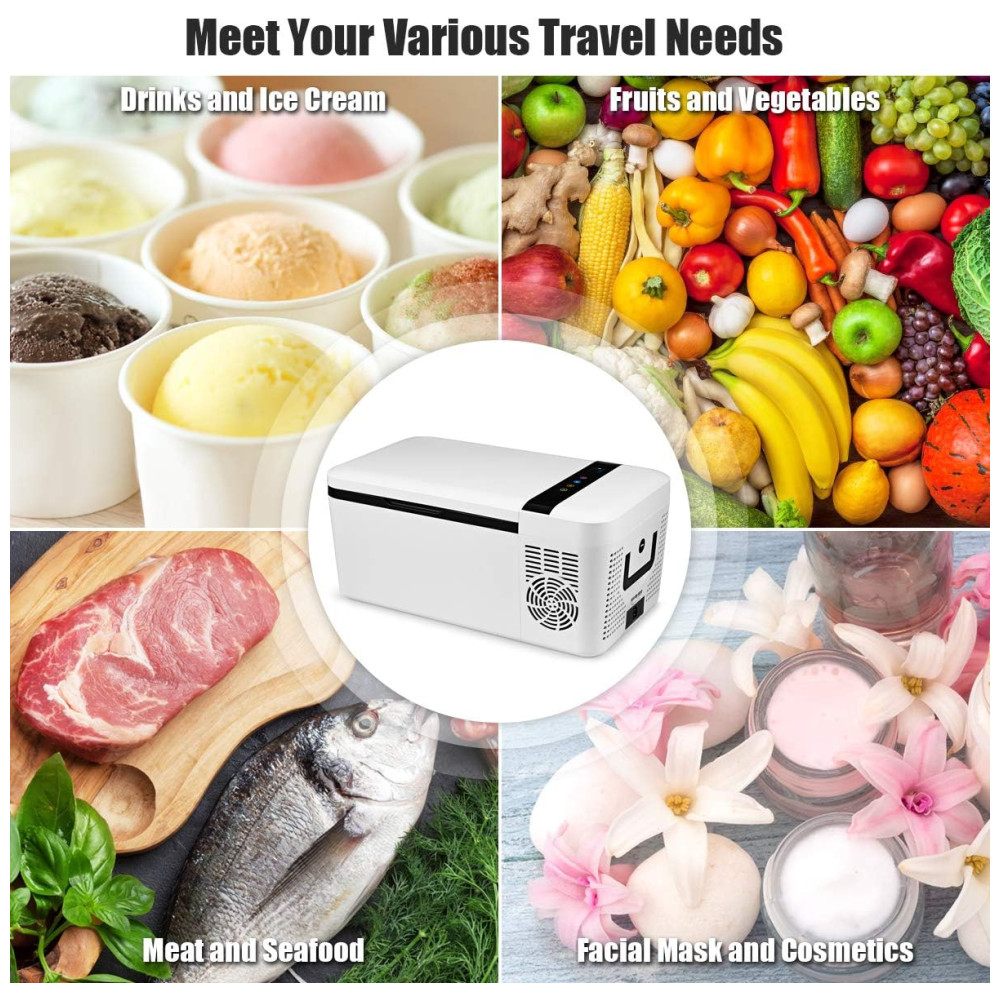 Desfrute de alimentos frescos ou bebidas frias ao ar livre. Este refrigerador de carro vem com duas alças para facilitar o transporte. Trabalhando na fonte de alimentação de 220V CA e 12V DC e conectando qualquer adaptador de tomada automática de 12V, é leve e perfeito para atividades ao ar livre, como viagens, piqueniques e férias. Possui tira de vedação de borracha e pedra absorvente de ferro para uma construção confiável das propriedades de vedação. Capacidade compacta para atender às suas necessidades. A capacidade do refrigerador de veículos é de até 15 L, o que pode facilmente atender às suas necessidades de viagem, como frutas, bebidas, legumes, carne, etc. Também pode ser em casa para atender às necessidades da vida. Além disso, também fornecemos a temperatura de congelamento para diferentes itens para sua referência. Tela de temperatura nítida e fácil de controlar. Possui um painel de toque LCD, interface de operação simples e clara para ajudar os usuários a alternar entre os modos e ajustar a temperatura digitalmente. Você pode alternar entre Fahrenheit e Celsius no painel da tela para atender às suas diferentes necessidades. A faixa de temperatura controlável é de 18 C 10 C. Design de economia de energia e resfriamento rápido. Nosso refrigerador de carro com compressor vem em 2 modos diferentes, MAX e ECO. Quando você usa o modo MAX, ele esfria rapidamente para economizar tempo e melhorar sua eficiência de vida. E o modo ECO significa que o compressor está funcionando no modo de economia de energia. Seu consumo de energia é de apenas 0.15kwh , 24hrs. Design à prova de choque e garantia de segurança. Nosso refrigerador é feito de ABS e PP durável e equipado com um cabo de alimentação certificado pela UL. A geladeira com proteção de energia em três níveis pode proteger as baterias de automóveis e possui um design à prova de choque, que pode enfrentar a estrada irregular. Além disso, possui várias saídas de ar para ajudar efetivamente a dissipação de calor. Descrição. Este refrigerador de veículo com compressor possui capacidade de zenamento suficiente 15 litros e uma longa vida útil. Pode manter suas bebidas, frutas, carnes e legumes frescos e melhorar sua qualidade de vida. E possui modo de resfriamento rápido e modo de economia de energia. Feito de materiais de alta qualidade e equipado com três níveis de proteção da bateria e recursos à prova de choque, é muito conveniente para o seu uso diário. Ao mesmo tempo, esta geladeira também pode ser usada em casa. Seu baixo ruído pode fornecer um ambiente confortável e silencioso. Não hesite, compre um Recurso Possui os modos MAX resfriamento rápido e ECO economia de energia. Ele pode esfriar rapidamente e a faixa de temperatura controlável é de 18 C 10 C. O espaço de zenamento compacto pode refrigerar bebidas, legumes, frutas, carne, sorvete e muito mais. O visor LCD fácil de operar mostra claramente a temperatura, modo e energia. Você pode alternar livremente entre Fahrenheit e Celsius no painel da tela. O design à prova de choque protege a segurança do equipamento enquanto você dirige na estrada. Sistema de proteção de bateria de automóvel de três níveis para evitar o esgotamento de baterias de automóvel. Alças portáteis e design compacto são fáceis de transportar. Possui baixo ruído e baixo consumo de energia. Equipado com porta de carregamento USB, pode carregar o seu telefone móvel. Especificação. Cor Branco. Material ABS e PP. Dimensão geral 58, X X 25,. Capacidade 15 litros. Peso líquido 11 quilos. Potência nominal 45W. Tensão 12 , 14V DC, 110V 240VAC, 50 60Hz. Consumo médio 0,15kwh , 24h. Faixa de temperatura 18 C 10 C. Ruído 45 dB. O pacote inclui 1 Cooler para veículo, 1 Cabo de alimentação DC, 1 Adaptador CA, 1 Manual do Usuário