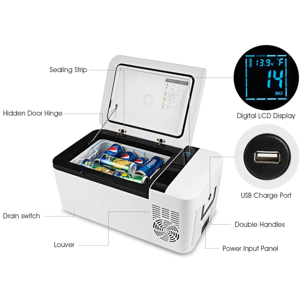Mini Cooler Automotivo Portátil 15 Litros Quente Frio com Tela de LCD12V COSTWAY 23827 CYPE Branco