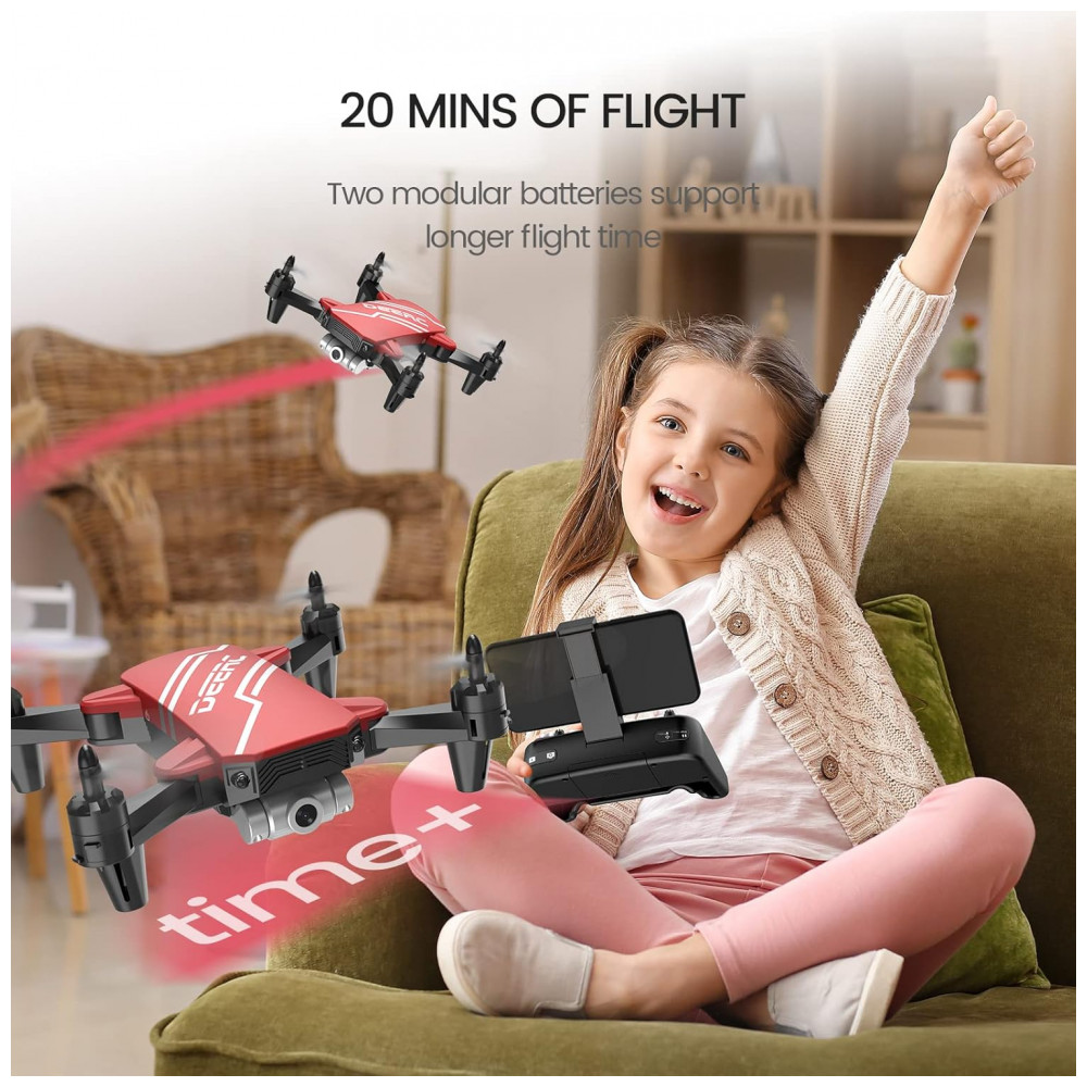 Desfrute de imagens cativantes com o drone D20, que possui uma câmera HD 720P com lente grande angular de 80 graus, permitindo capturar momentos incríveis com facilidade. Com transmissão FPV, você pode ver tudo em tempo real no aplicativo do seu smartphone. Com recursos avançados como controle por voz e selfies por gestos, o drone D20 é extremamente fácil de usar. Além disso, você pode realizar acrobacias incríveis e seguir cursos de voo desenhados em seu telefone, proporcionando uma experiência de voo emocionante e envolvente. Projetado para iniciantes, o drone D20 possui Modo Headless, Início/Aterrissagem com uma tecla e Altitude Hold, tornando-o fácil de operar. Com duas baterias modulares que proporcionam até 20 minutos de voo, você pode se divertir sem se preocupar com a falta de energia. Seguro e durável, o D20 é construído com a segurança em mente, com um design delicado que cabe facilmente na palma da mão e recursos como Parada de Emergência e Alarme de Baixa Potência para garantir um voo seguro. As quatro proteções de hélice oferecem segurança adicional contra acidentes. O drone D20 é uma excelente escolha para quem procura um drone fácil de usar, divertido e envolvente. Seja você um iniciante ou um profissional experiente, este incrível drone certamente proporcionará inúmeras horas de diversão no ar. Experimente a alegria de voar com o drone D20 hoje!
