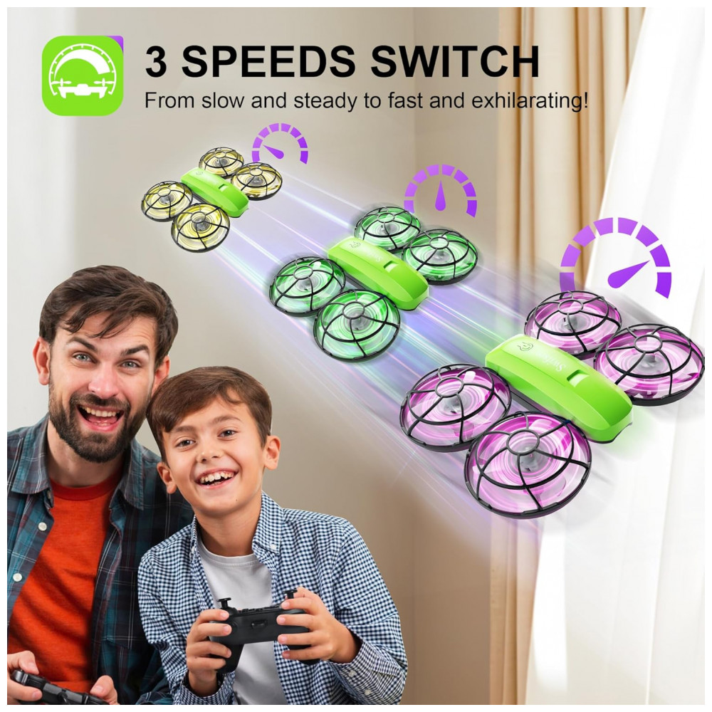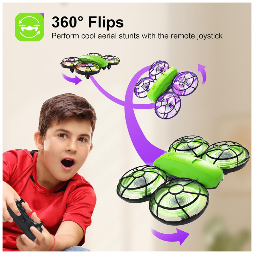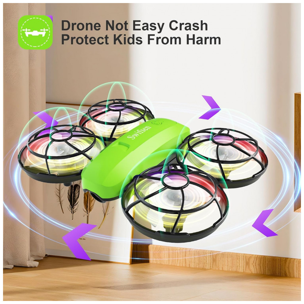 O Mini Drone Infantil com Câmera da Swifsen é perfeito para crianças de todas as idades. Com um simples clique, o drone decola graças às funções One Key Start/Landing e Altitude Hold, que permitem ascendê-lo facilmente e mantê-lo em uma altura estável. Equipado com luzes coloridas que encantam as crianças, o drone pode realizar manobras como arremesso, looping, flips em 3D e rotações automáticas. Além disso, possui proteção total das pás, garantindo segurança em caso de colisões. As baterias modulares garantem maior durabilidade e segurança, proporcionando cerca de 15 minutos de voo. Divirta-se com segurança e qualidade!