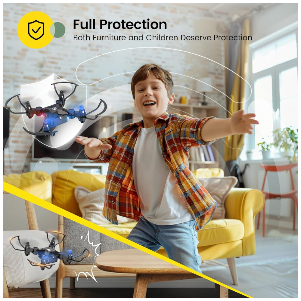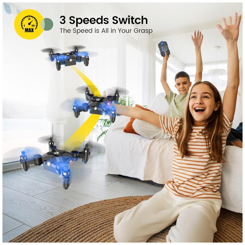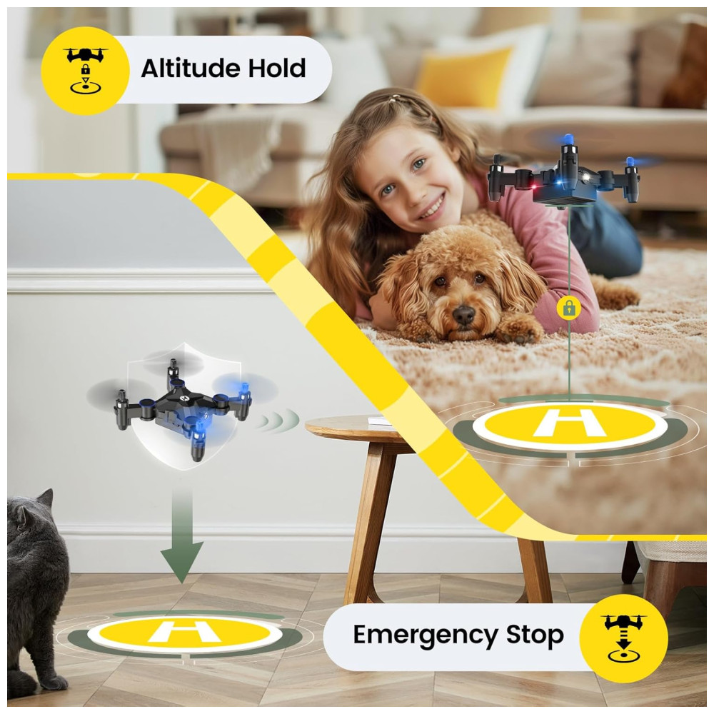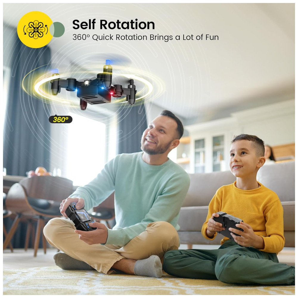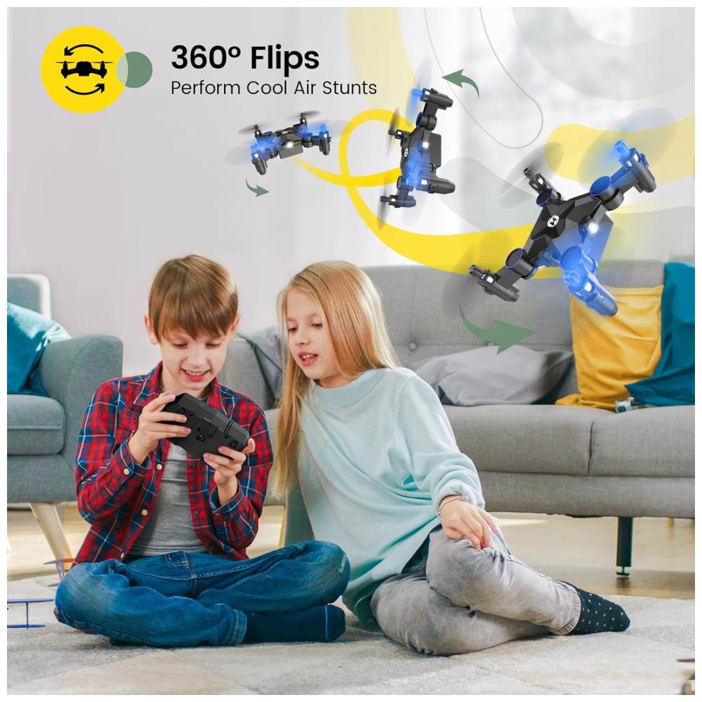 Este drone é perfeito para crianças e iniciantes que querem uma experiência de voo divertida e fácil. Com a função de decolagem com um clique e o recurso 3D Flips, ele adiciona uma camada extra de emoção ao voo. A função Altitude Hold mantém o drone estável em uma altura fixa no Modo Headless, garantindo um voo tranquilo e sem preocupações para crianças e novatos.