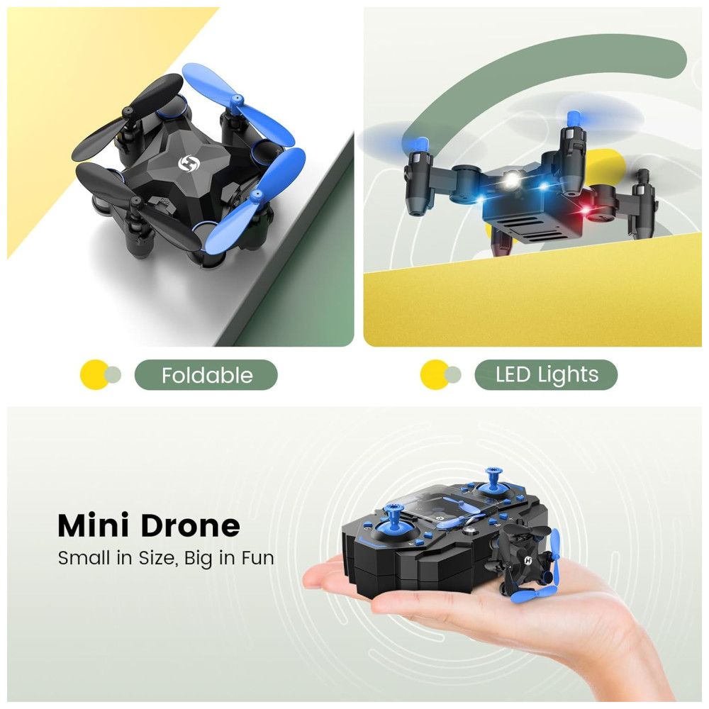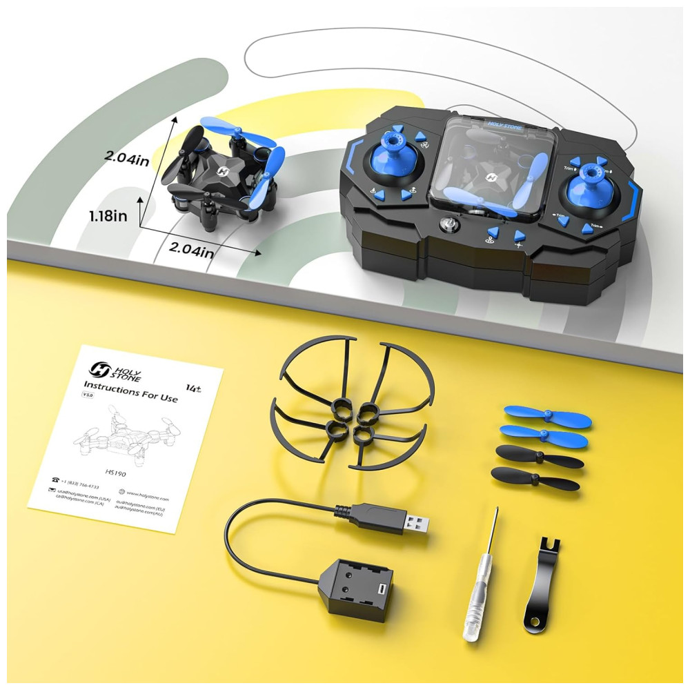 Mini Drone para Crianças com Giros 3D 3 Velocidades Pairar Automático e Função Decolagem e Pouso Holy Stone HS190 Azul