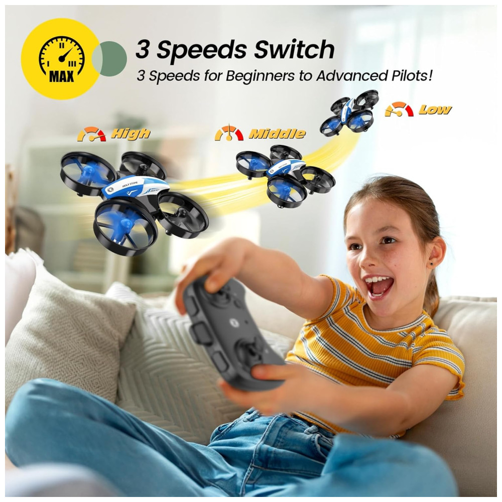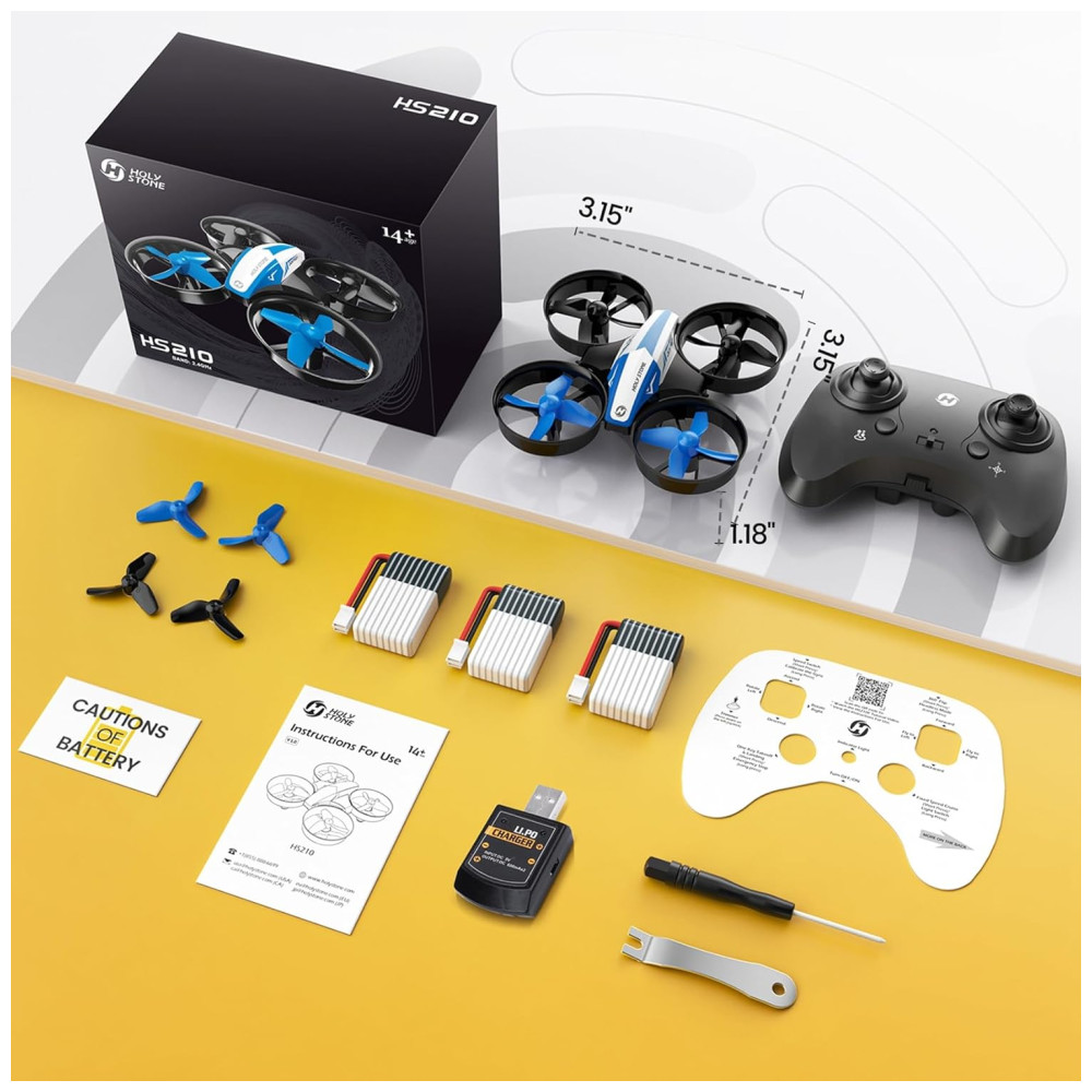 Mini Drone para Crianças e Iniciantes com Pairar Automático Giros 360º Pouso Automático e 3 Baterias Holy Stone HS210 Azul