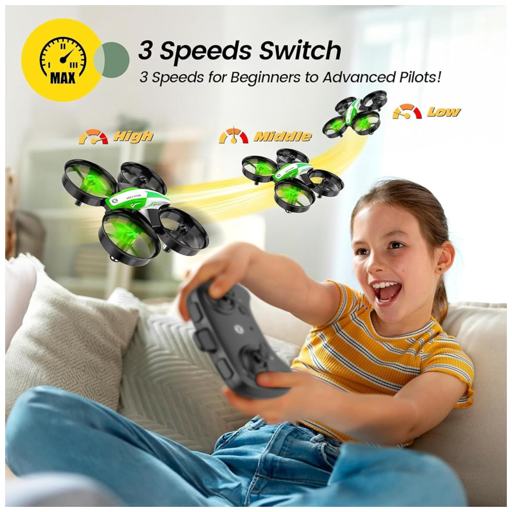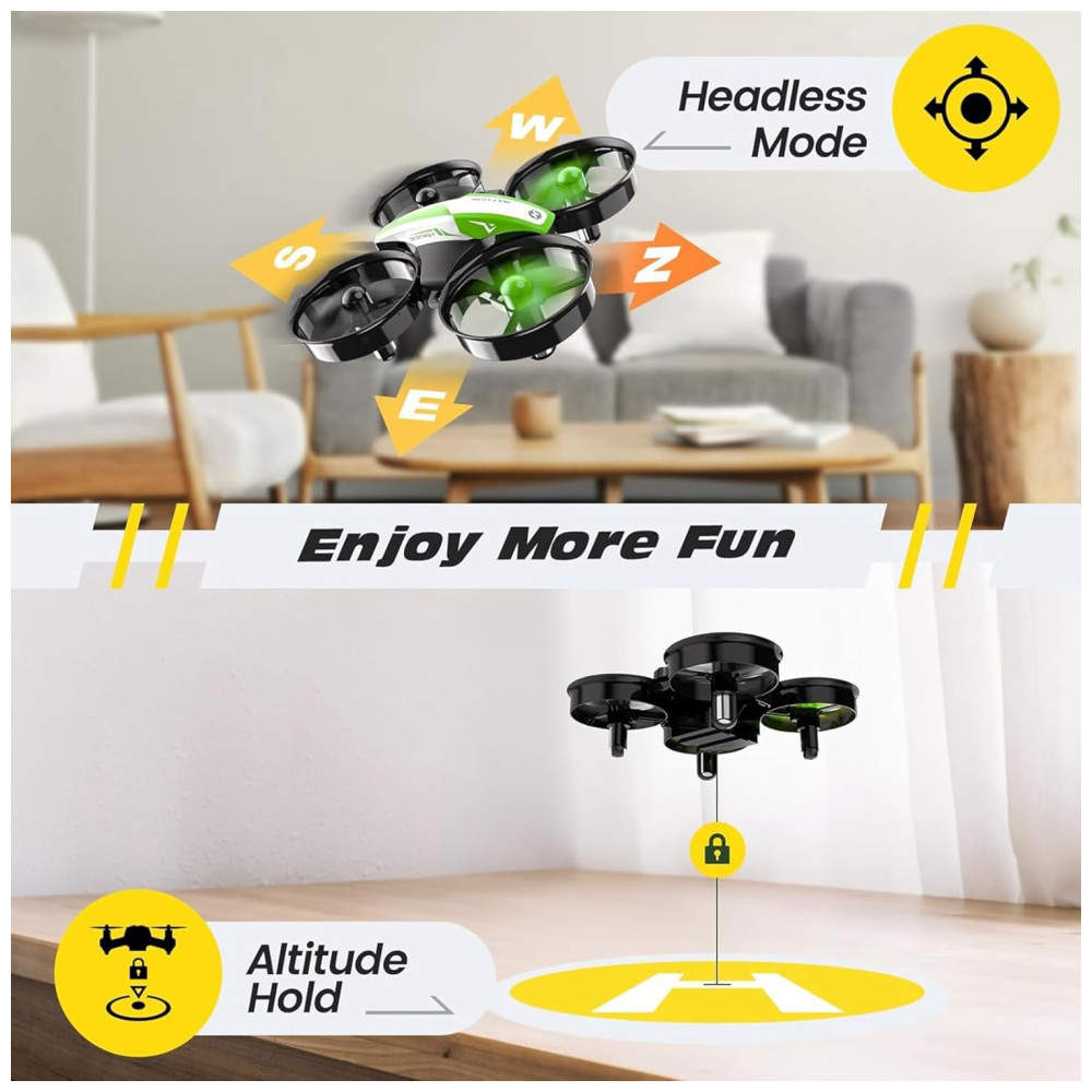Mini Drone para Crianças e Iniciantes com Pairar Automático Giros 360º Pouso Automático e 3 Baterias Holy Stone HS210 Verde