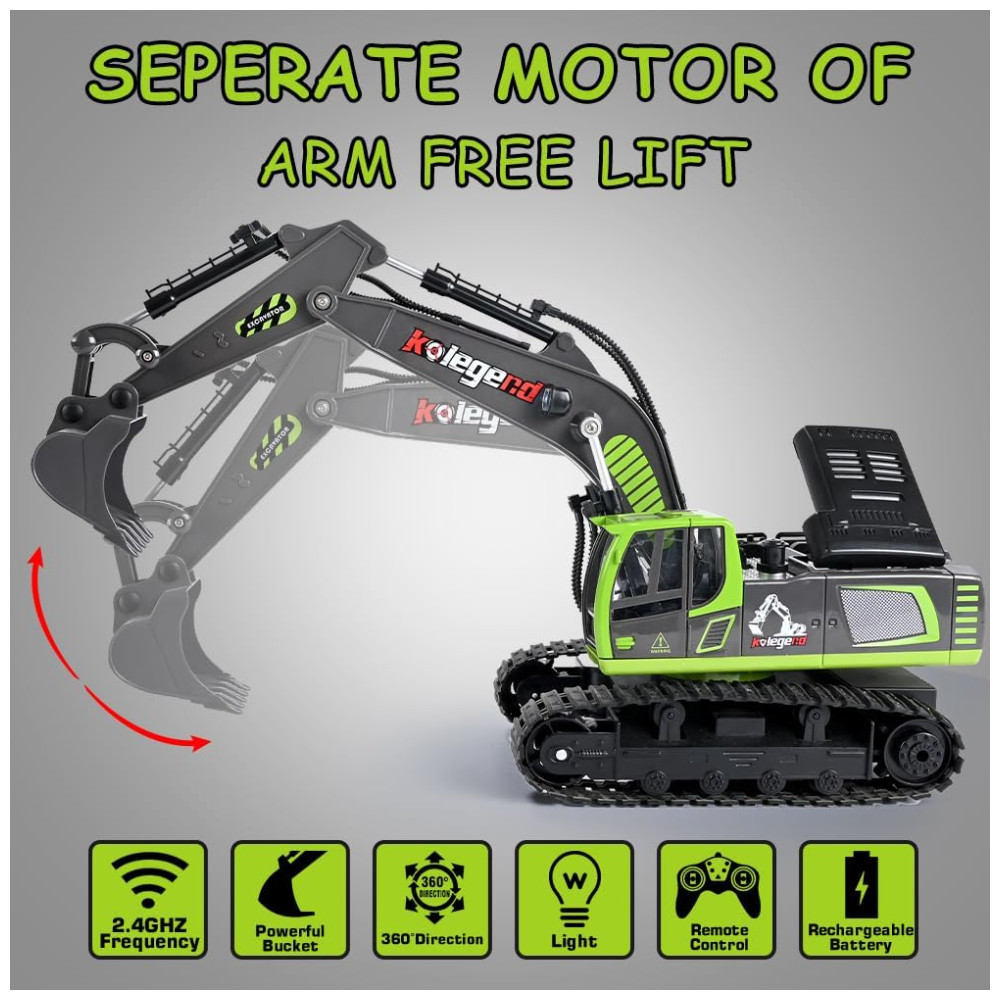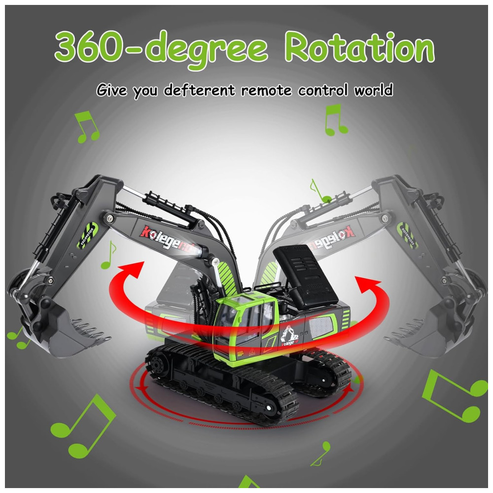 Mini Escavadeira RC Kolegend 41cm – Veículo de Construção com Controle Remoto de 11 Canais e Função Hidráulica – Presente Ideal