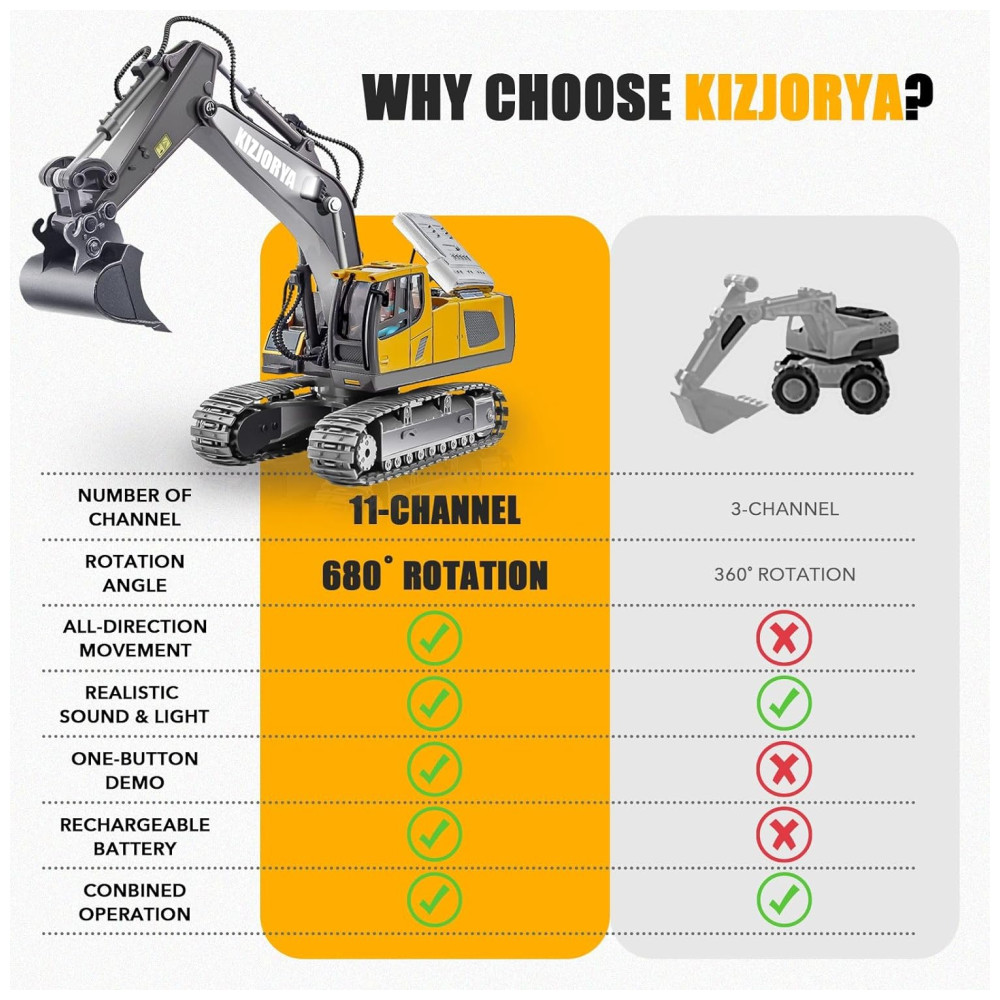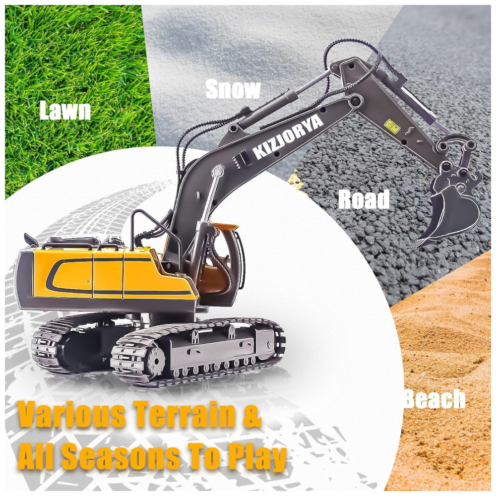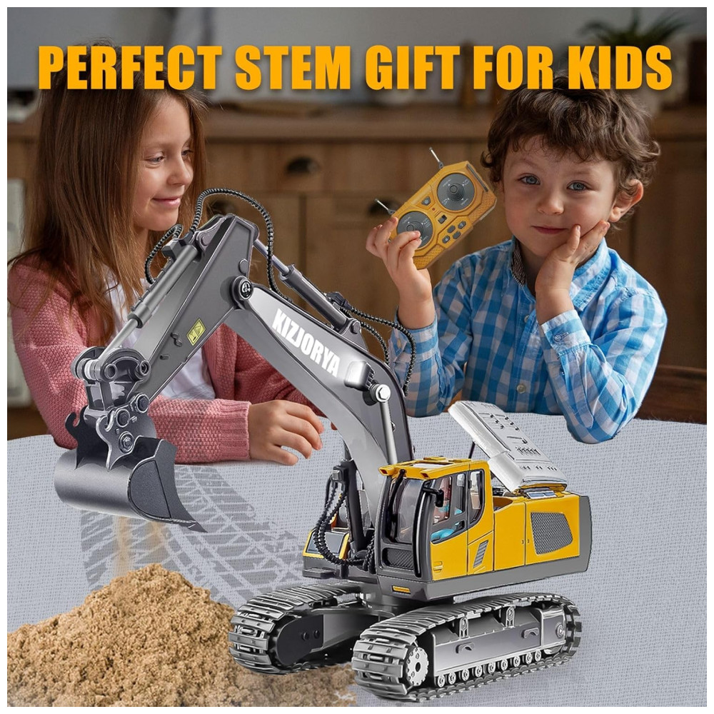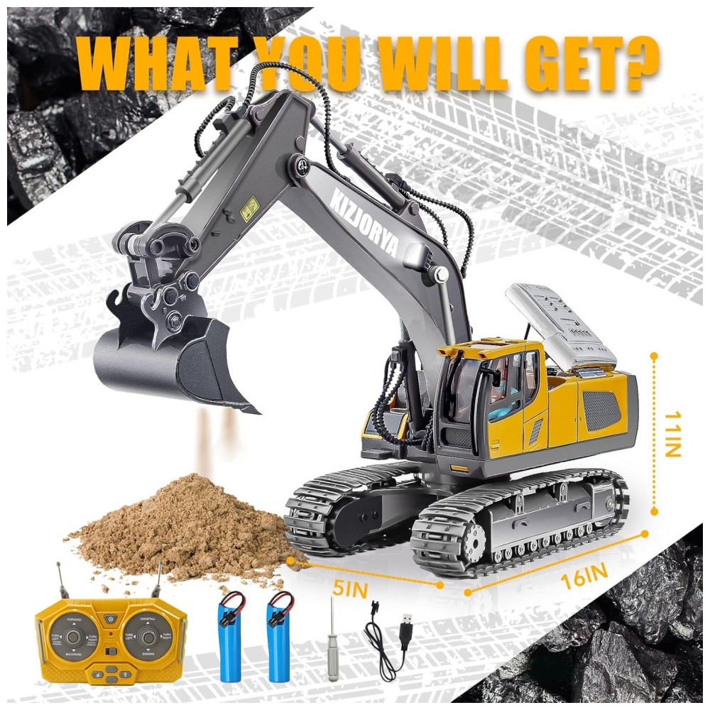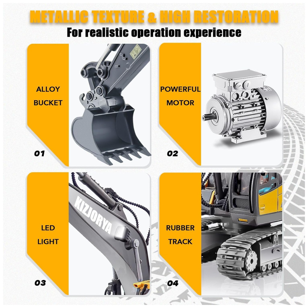 Mini Escavadeira RC Recarregável 1:24 c/ Som Luz Pá de Metal – Presente p/ Meninos de 6 a 12 Anos.KIZJORYA