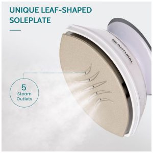Base única em forma de folha Diferente de muitas no devido à sua base em forma de folha Esta forma de ponta dupla permite que você empurre facilmente o ferro em espaços apertados ou cantos de suas roupas.