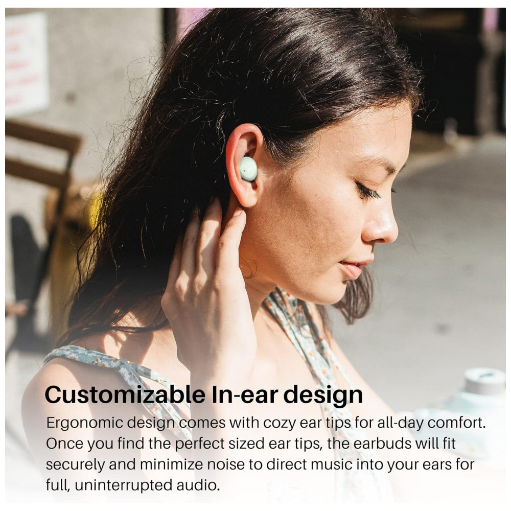 Ultraleve e compatível para orelha pequena A superfície e o ângulo da parte intra auricular dos fones de ouvido A1 foram polidos e refinados repetidamente para alcançar um equilíbrio entre beleza e conforto e torná lo confortável de usar. Da mesma forma, um único fone de ouvido pesa apenas 3,7 g, tornando o leve como uma pena e discreto no ouvido. O design ergonômico oferece um ajuste confortável e que não se projeta de seus ouvidos, especialmente para esportes, exercícios e academia.