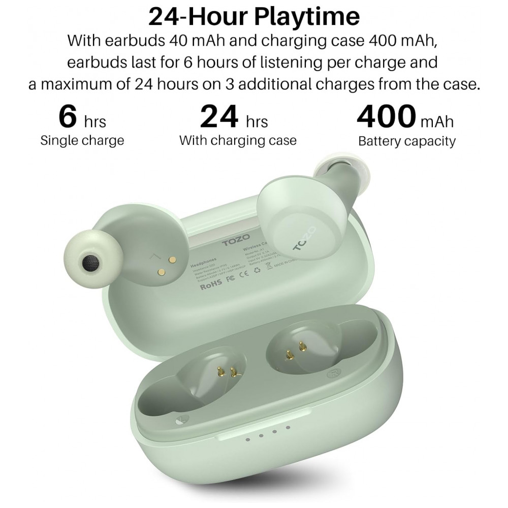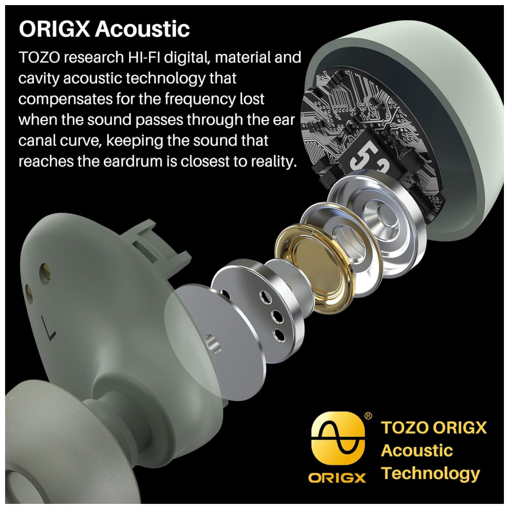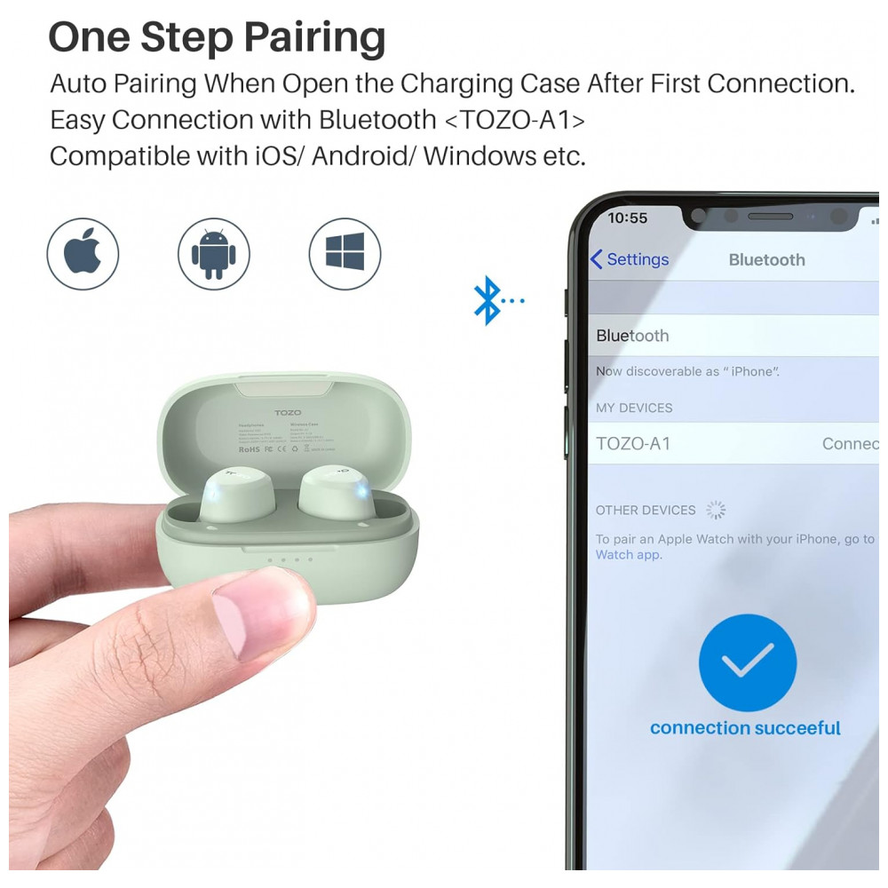 Qualidade de som estéreo O alto falante de de diâmetro dos fones de ouvido TOZO A1 apresenta uma faixa de som poderosa e ampla, o que torna os agudos cheios de dinâmica e os graves poderosos. Adote o chip Bluetooth avançado torna o som reproduzido pelos fones de ouvido muito mais bonito e agradável, adequado para esportes ou trabalho em casa.