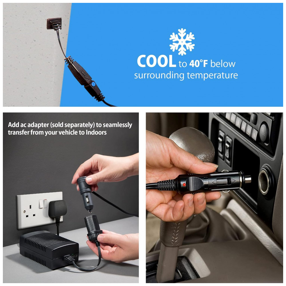 TECNOLOGIA TERMOELÉTRICA Iceless A tecnologia termoelétrica sem CFC e o motor do ventilador sem escovas resfriam eficientemente a 40F 22C abaixo da temperatura ambiente ou aquecem a 140F 60C, usando menos energia do que a luz traseira do seu veículo