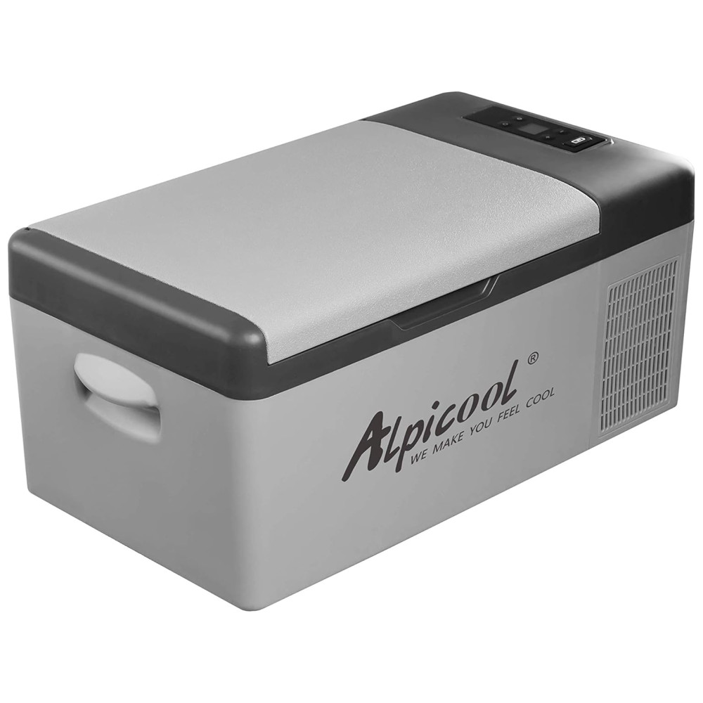 Mini Geladeira e Freezer Automotivo 15 Litros 12 24V DC e 110 240 AC e Sistema Solar ALPICOOL Cinza