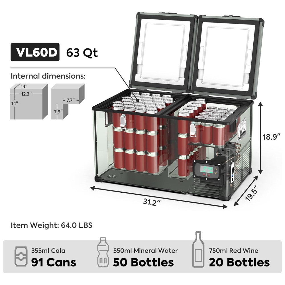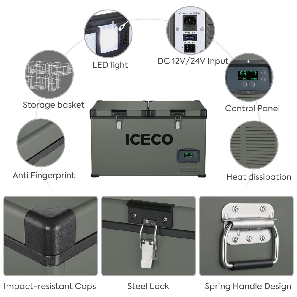 Mini Geladeira e Frigobar para carro VL60 Portátil 12 24V 110 60 L 220v ICECO 63QT with Cover Cinza escuro
