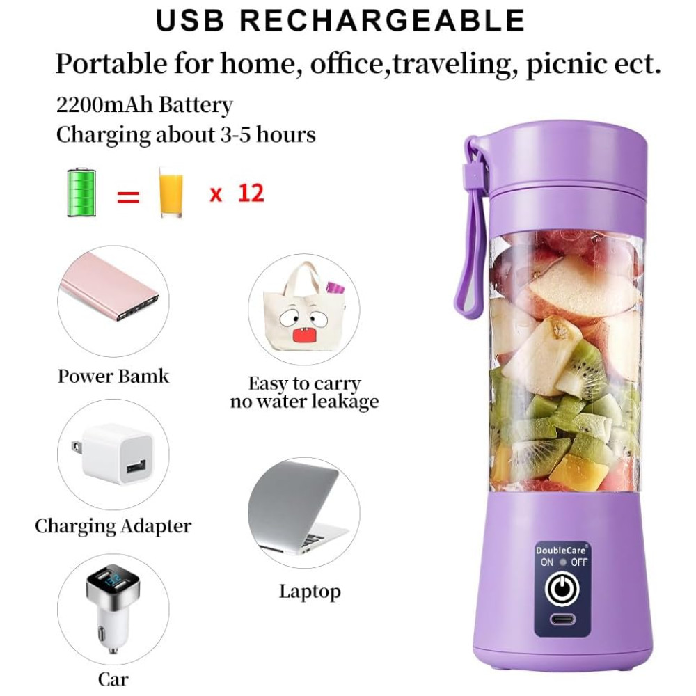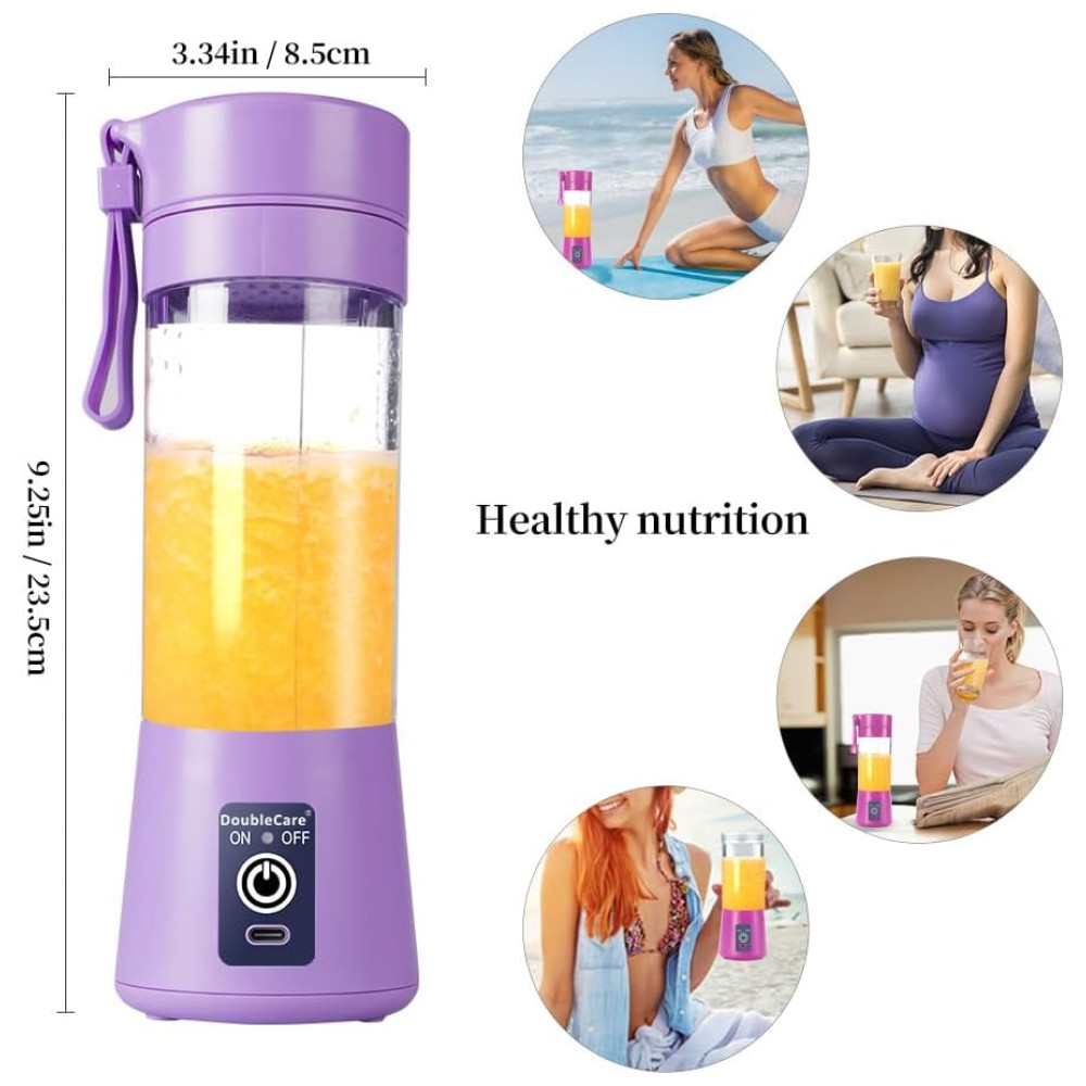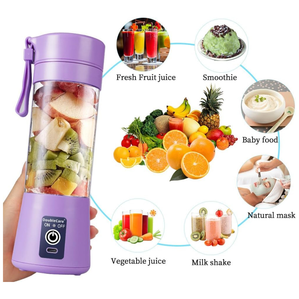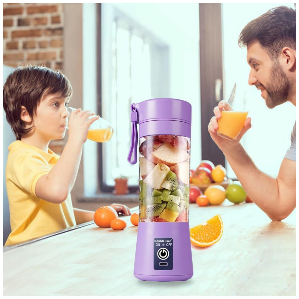 Mini Liquidificador Pessoal Portátil 380mL Recarregável USB com 6 Lâminas 110V DoubleCare Roxo