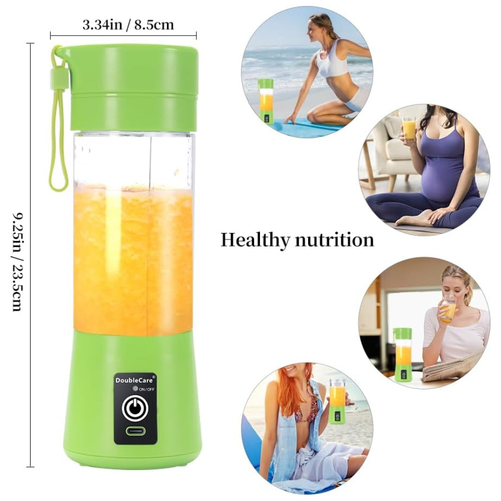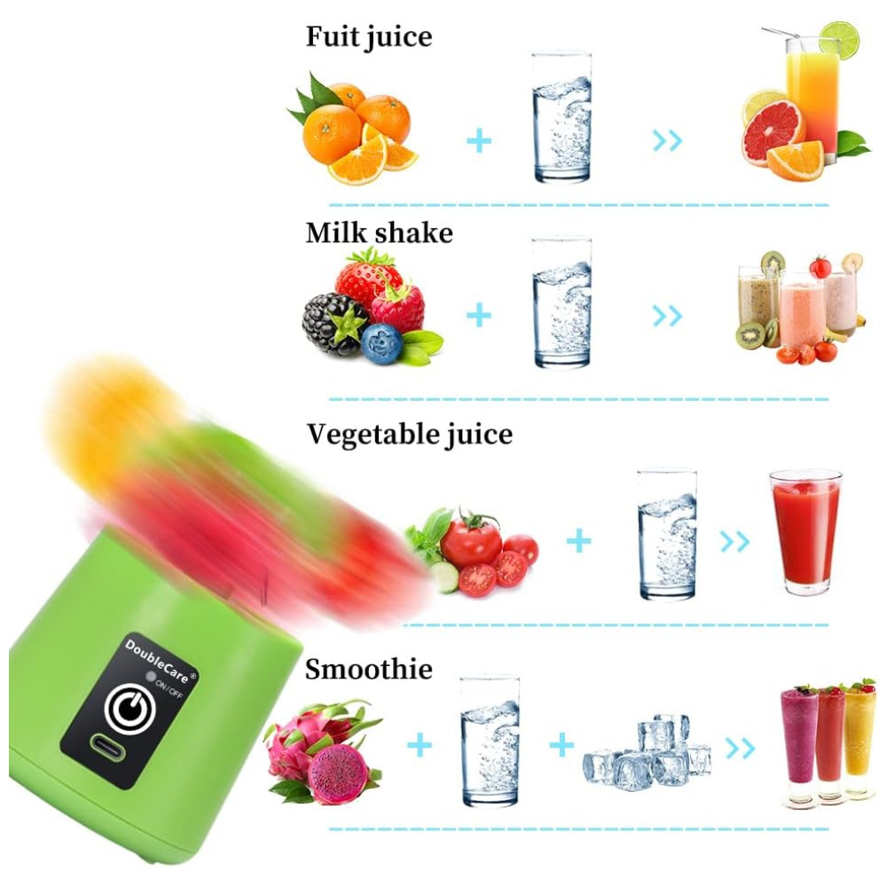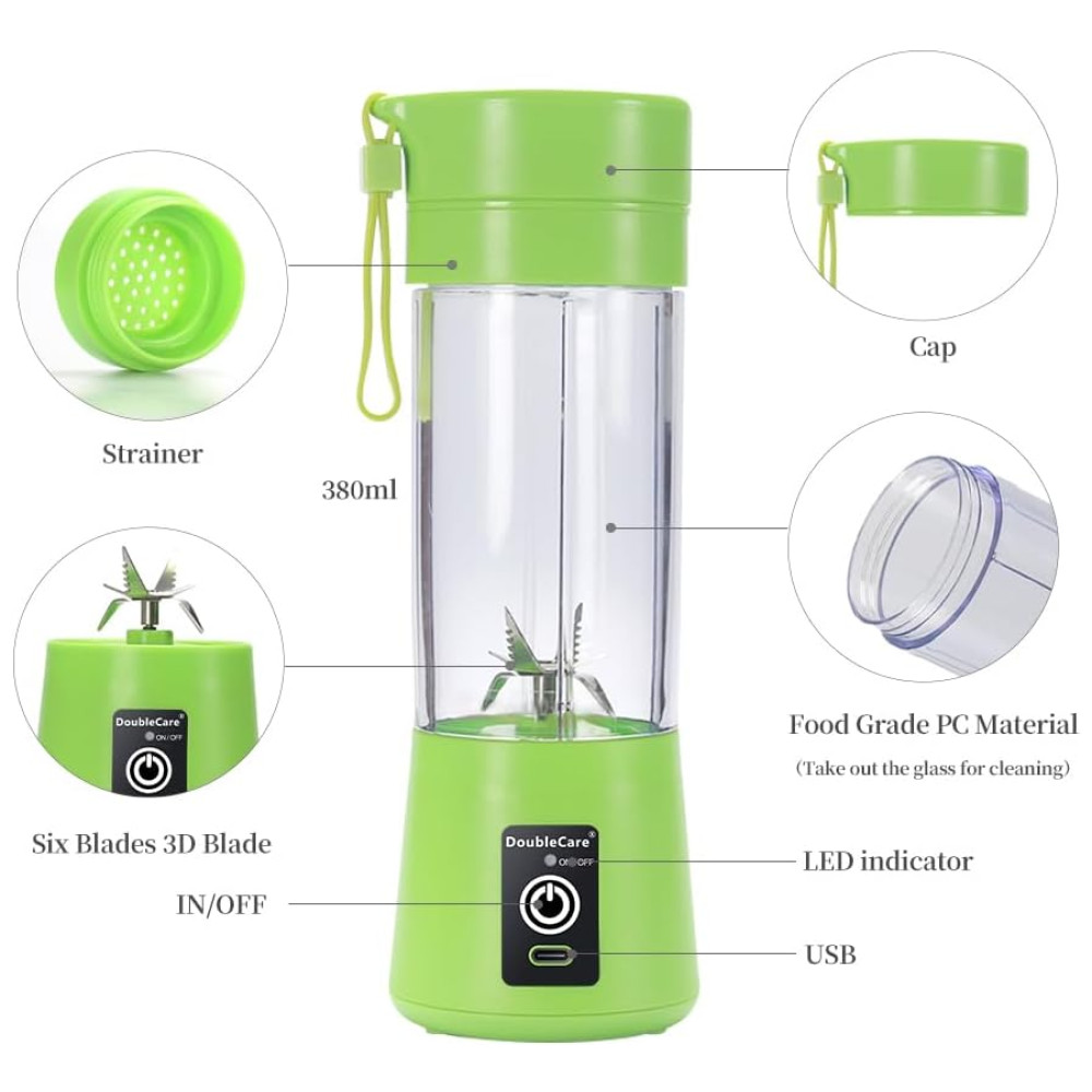 Mini Liquidificador Pessoal Portátil 380mL Recarregável USB com 6 Lâminas 110V DoubleCare Verde