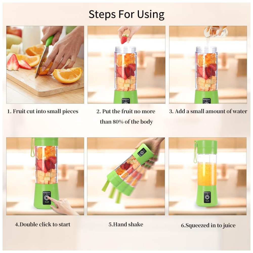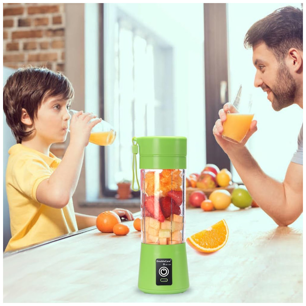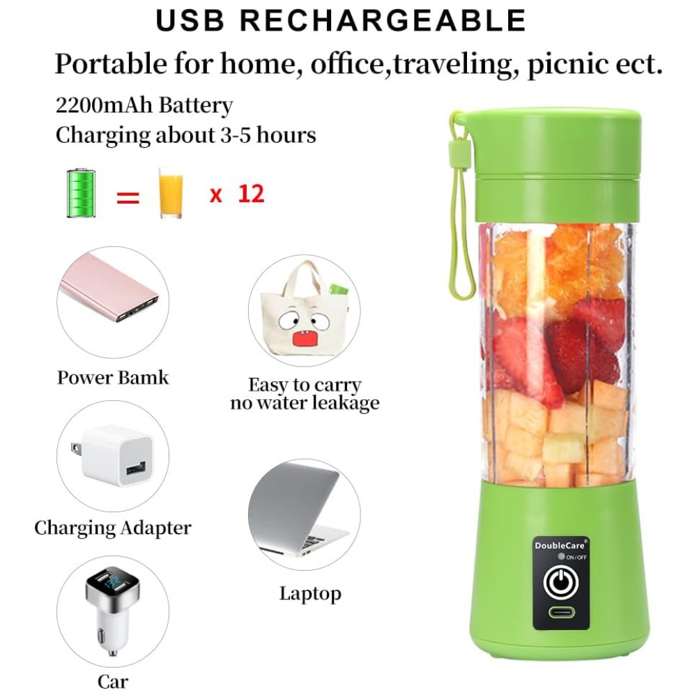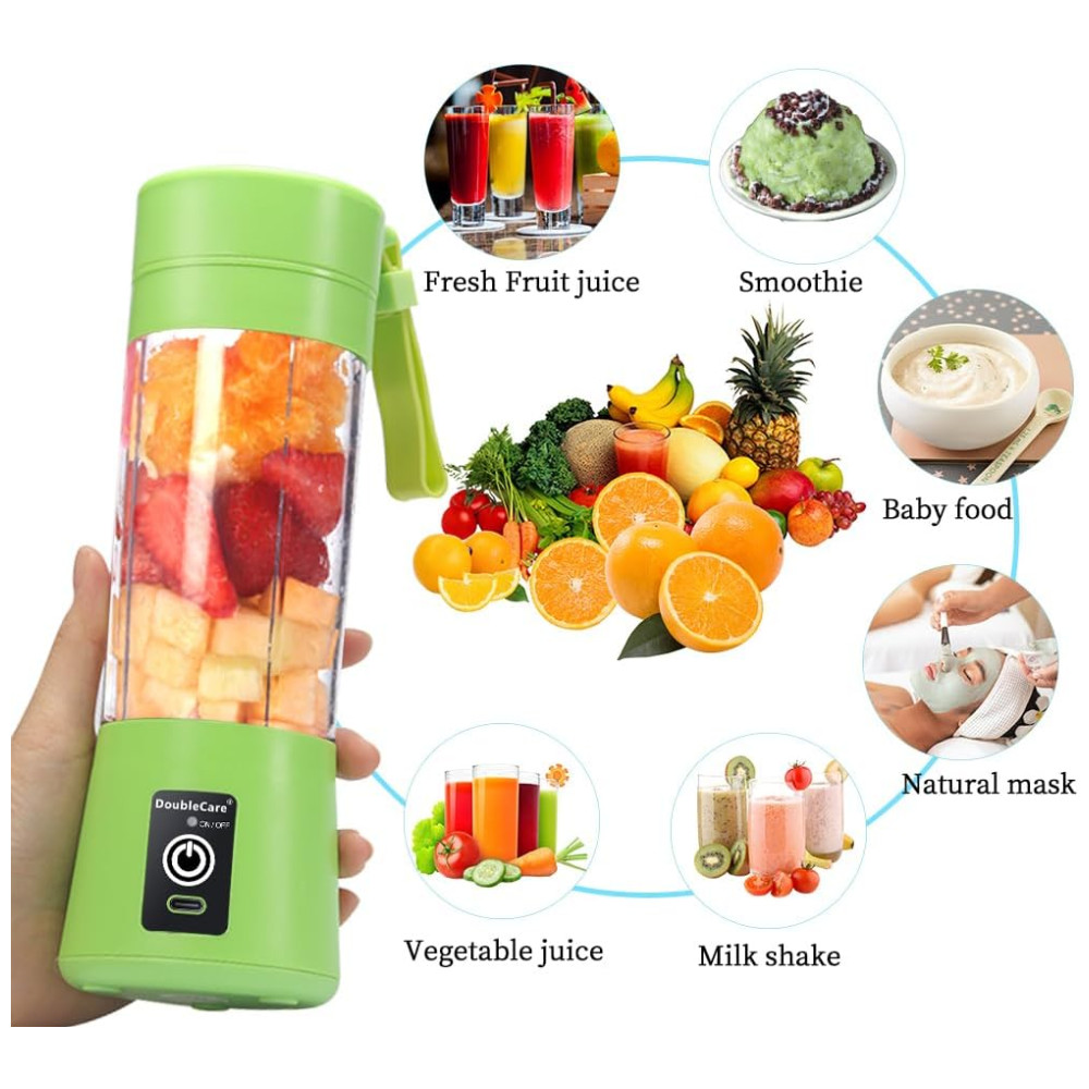 Mini Liquidificador Pessoal Portátil 380mL Recarregável USB com 6 Lâminas 110V DoubleCare Verde