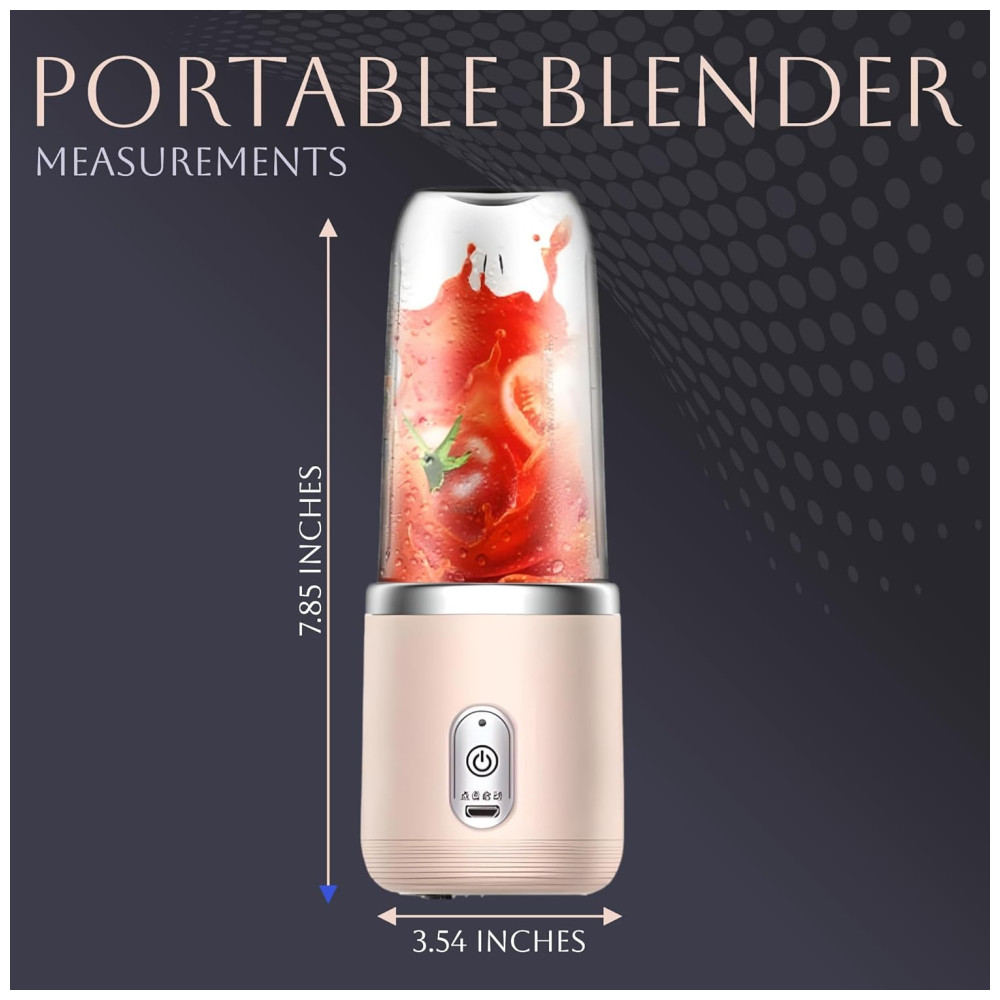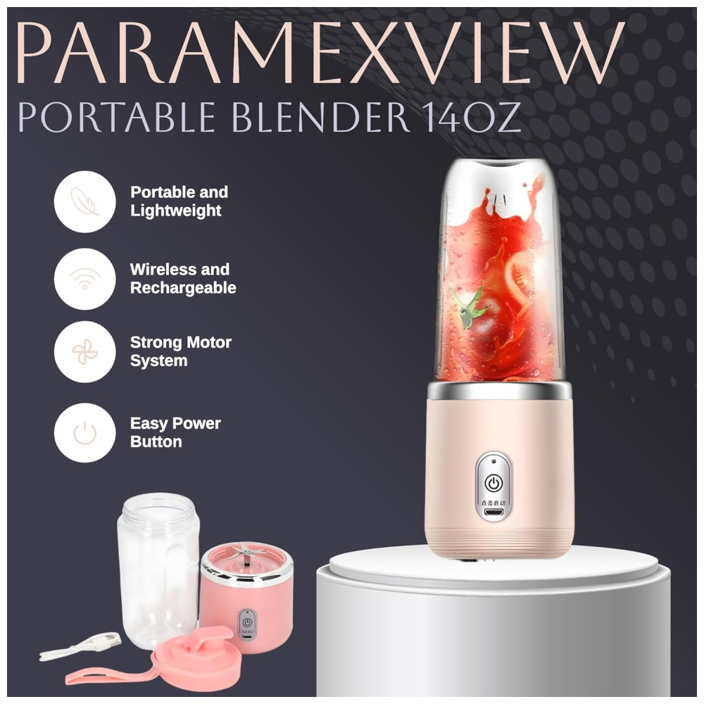 Mini Liquidificador Portátil 414mL com Carregamento USB e 6 Lâminas 200W Paramexview Rosa